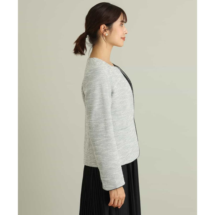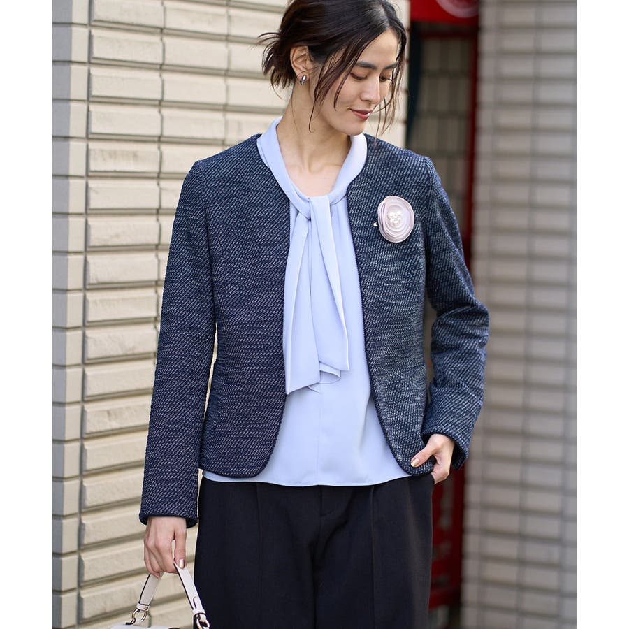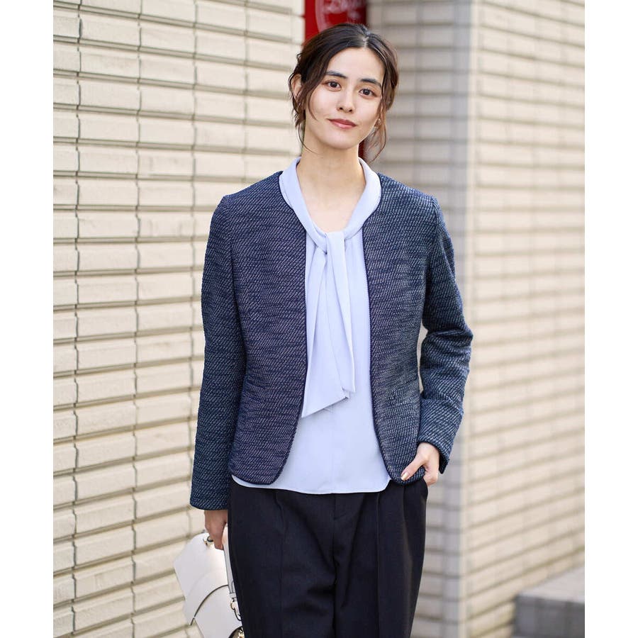 カルゼストレッチツイードキーネックジャケット