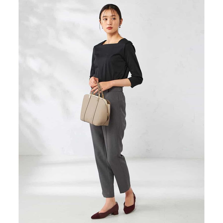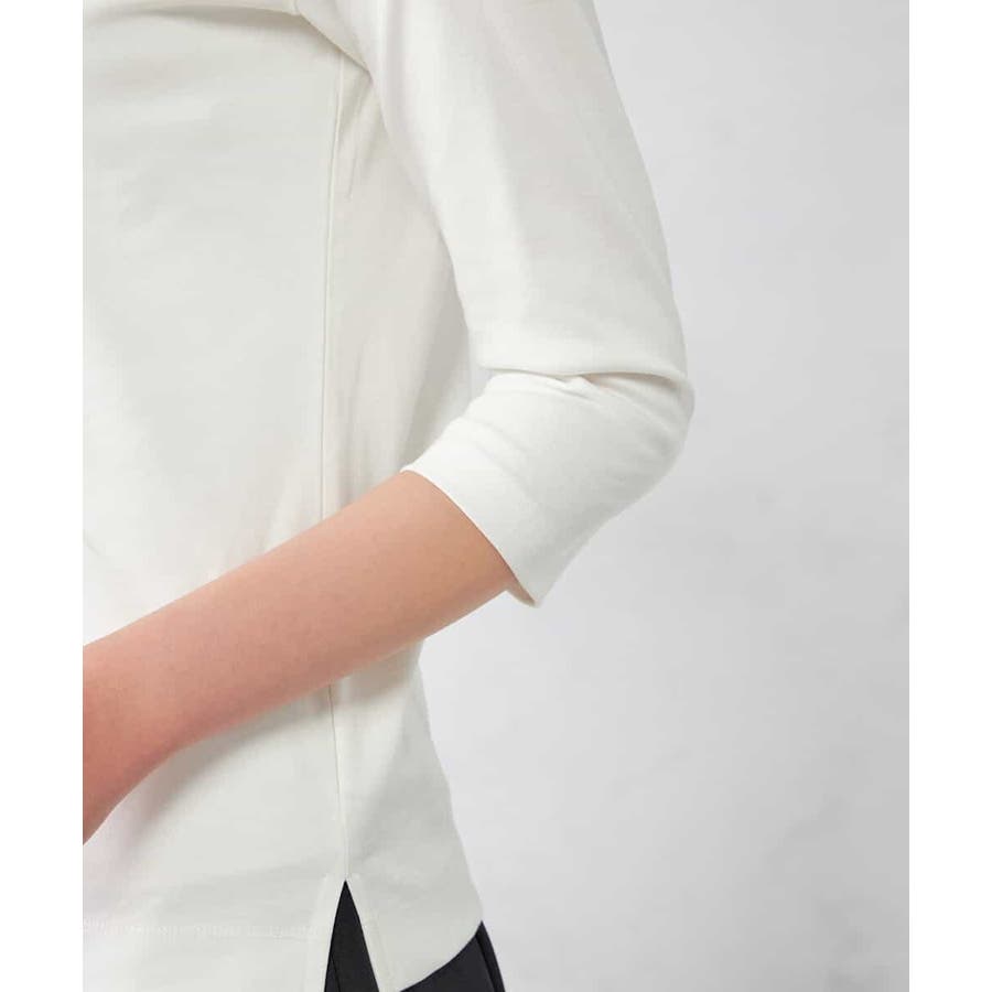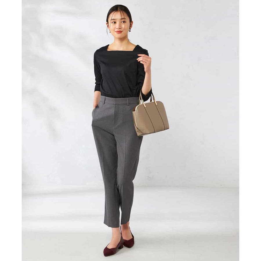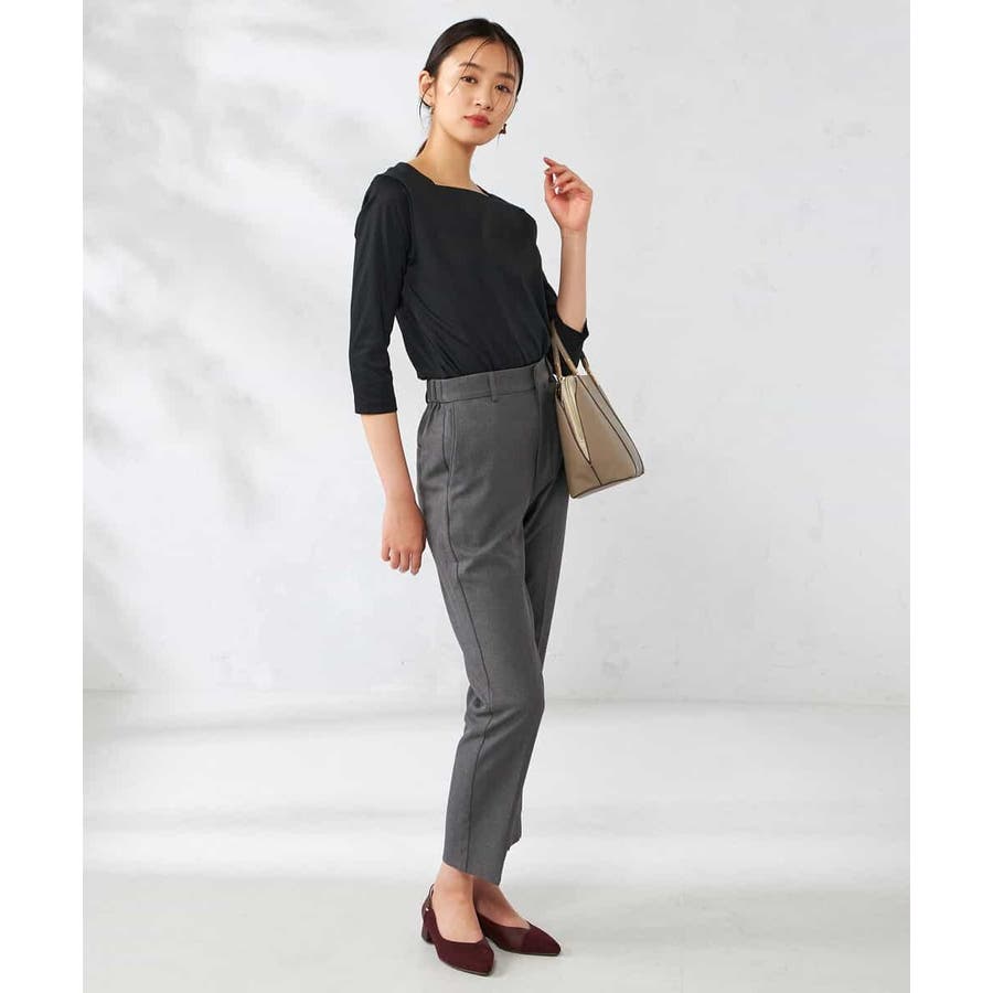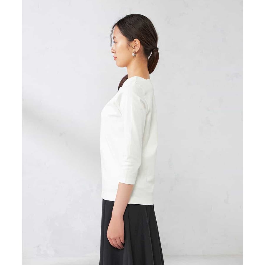 すっきりしたネックラインとシンプルなデザインがどんなボトムにも相性抜群。