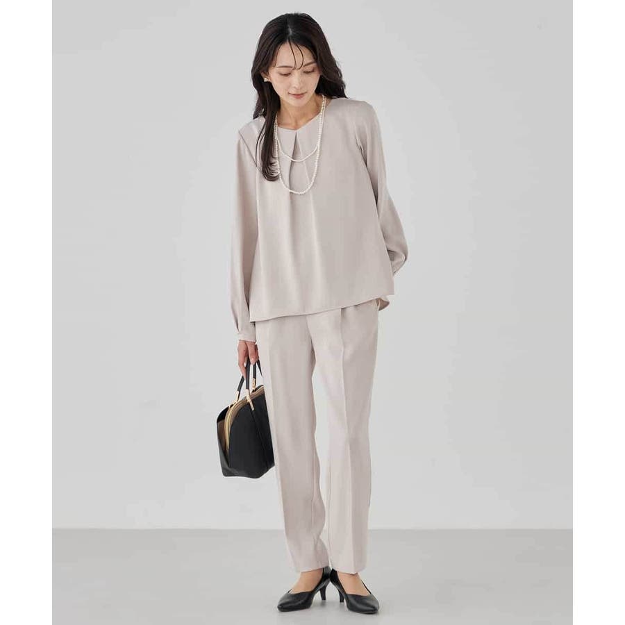 サテンテーパードパンツ【洗える/速乾/毛玉になりにくい/イージーケア】