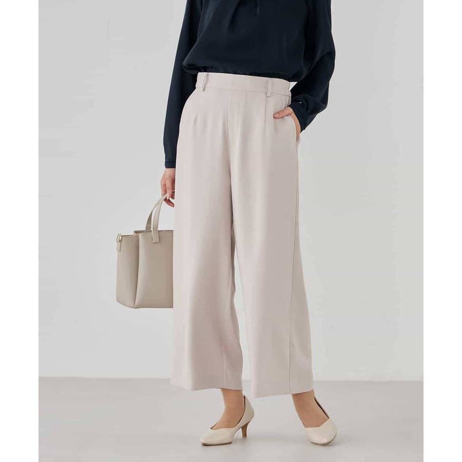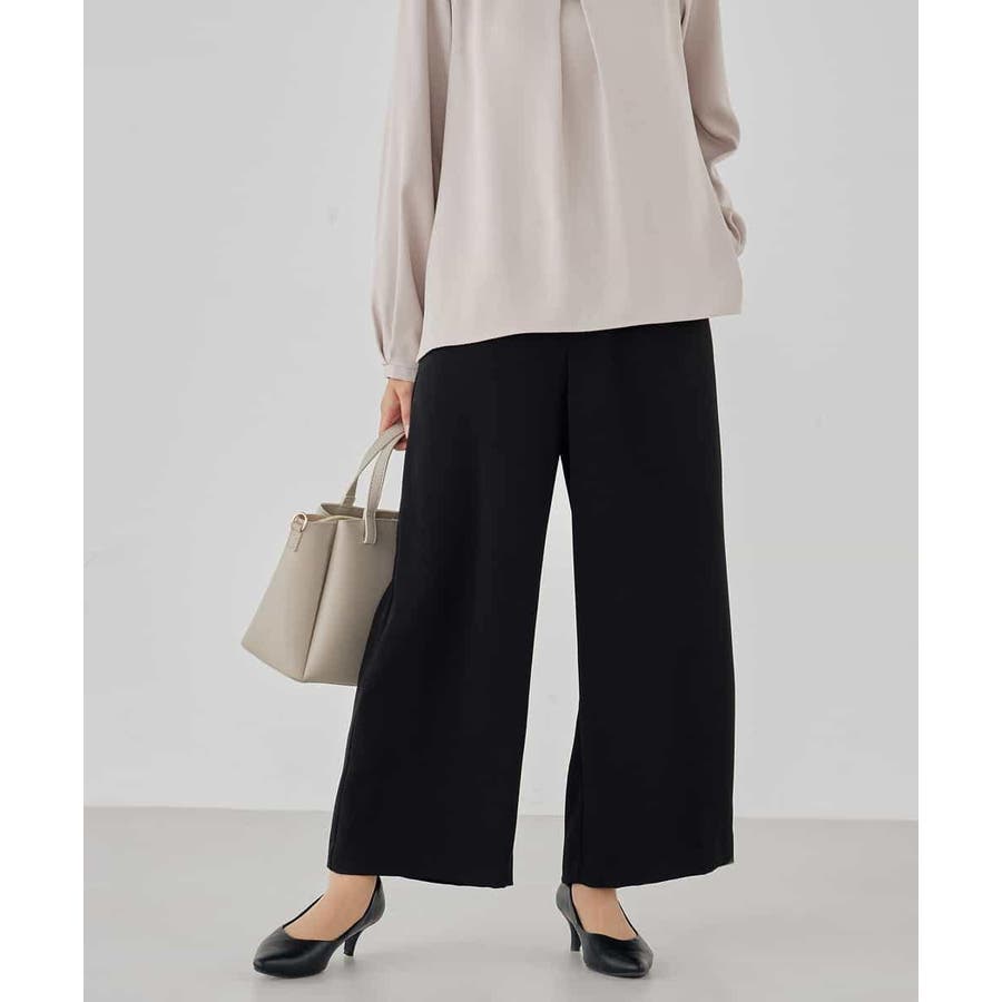 サテンワイドクロップドパンツ【洗える/速乾/毛玉になりにくい/イージーケア】