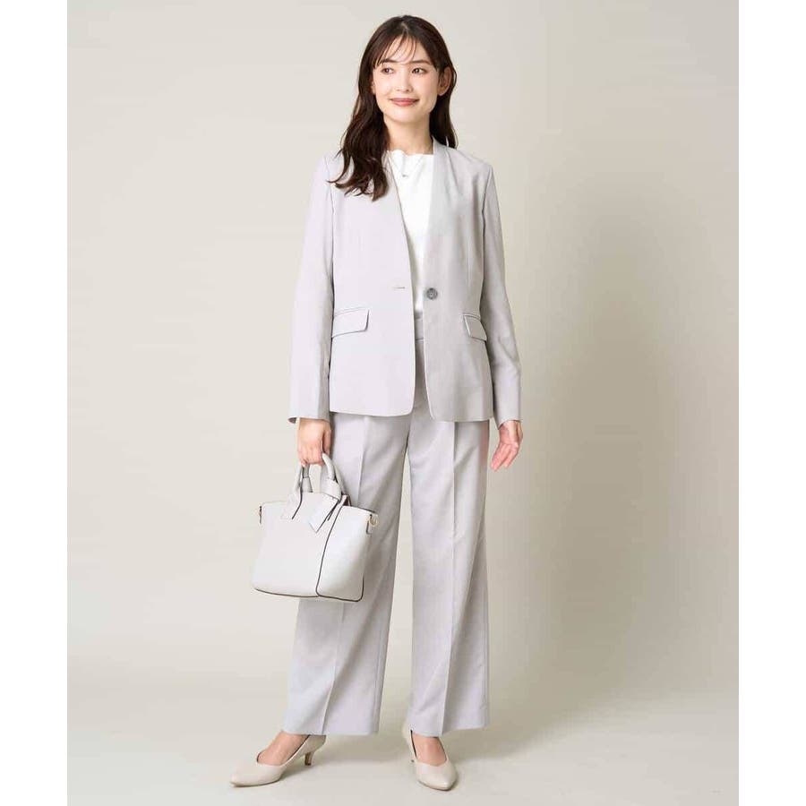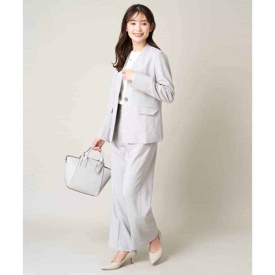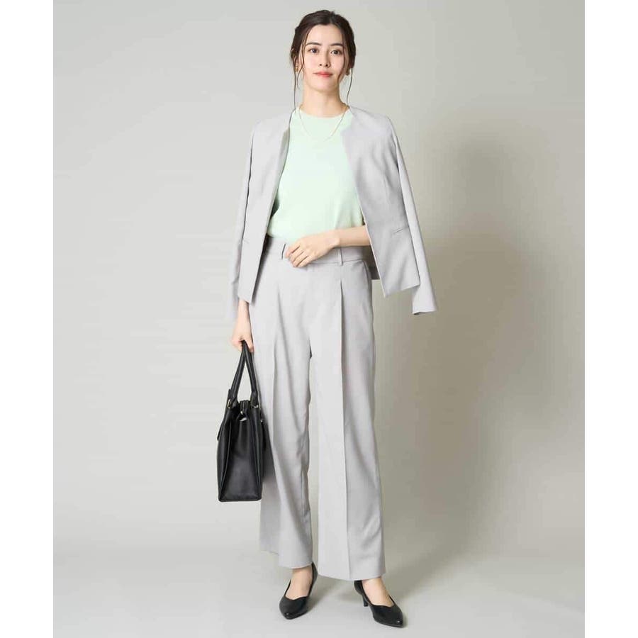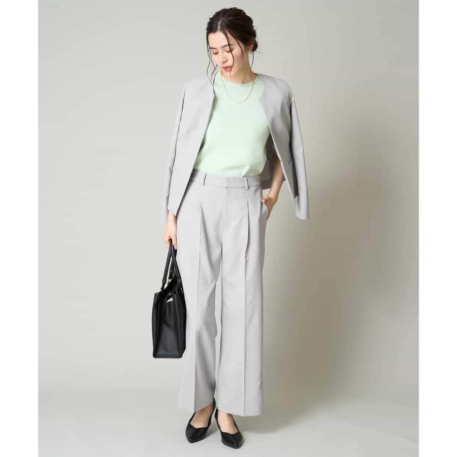 同素材ジャケットやブラウスとのセットアップ着用で