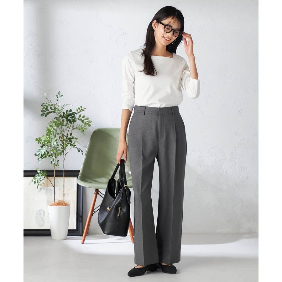 【洗える/イージーケア/吸水速乾/ストレッチ】梳毛調ストレートパンツ