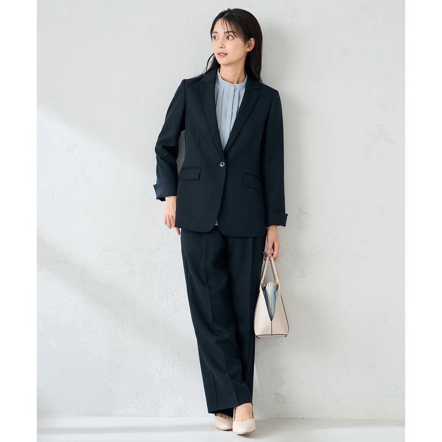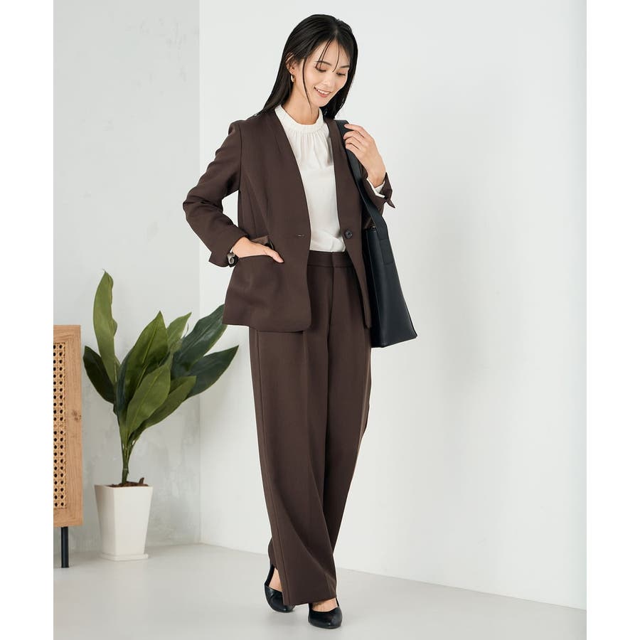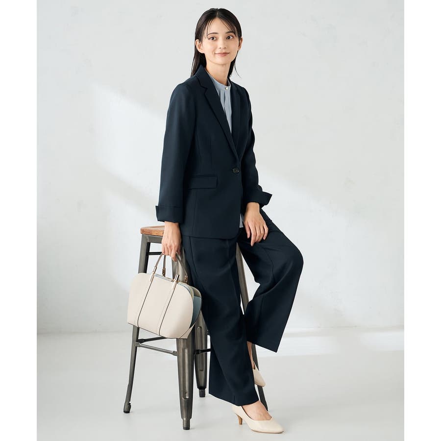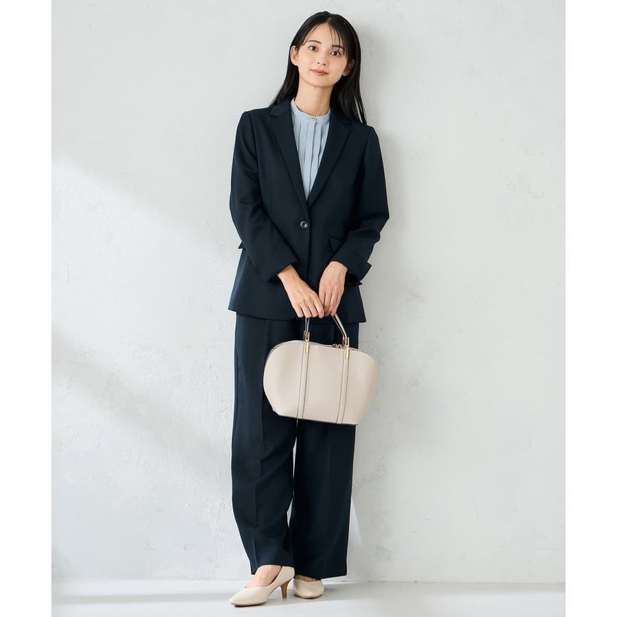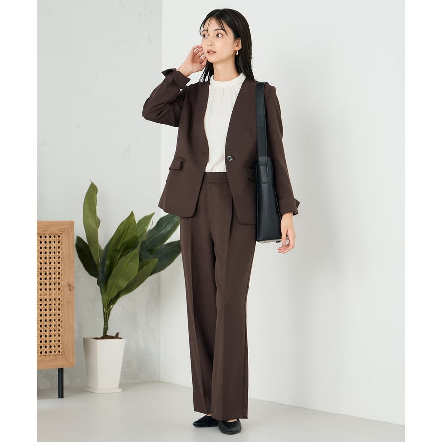 同素材ボトムとのセットアップ着用できれいめお仕事スタイルが完成。