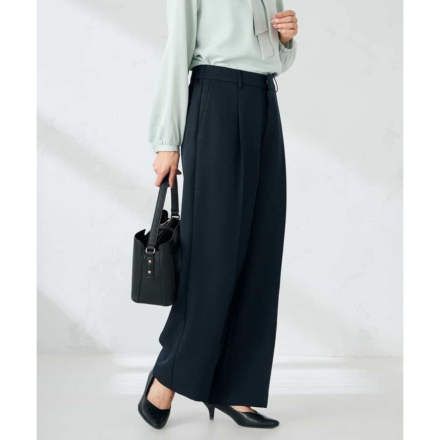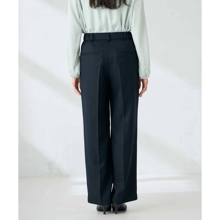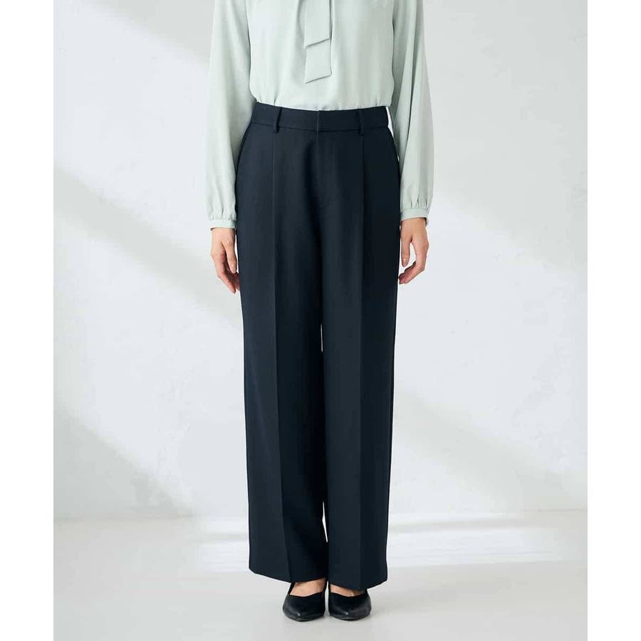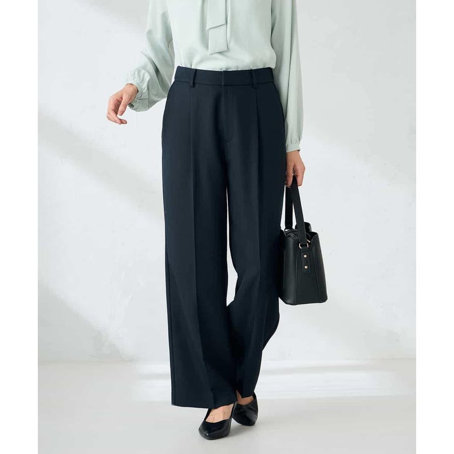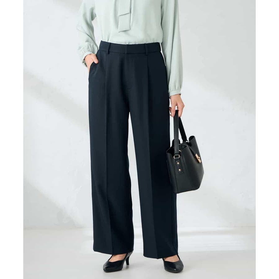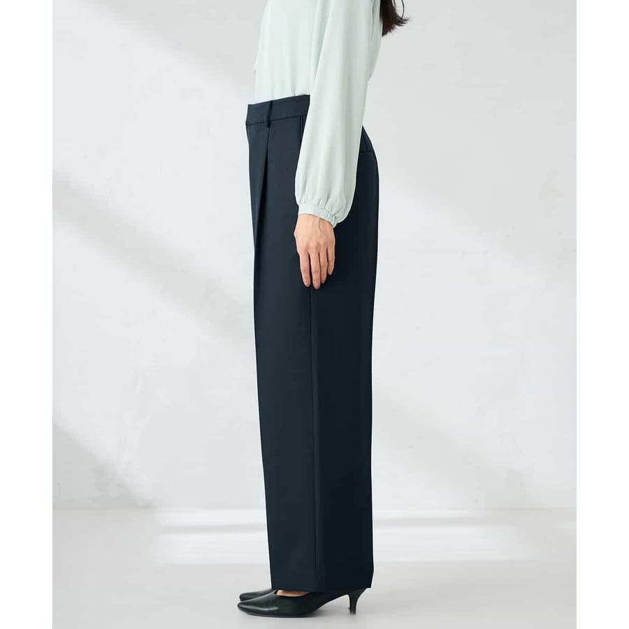 【洗える/イージーケア/ストレッチ】パウダーツイルワイドストレートパンツ