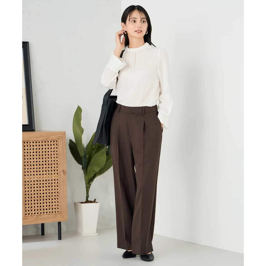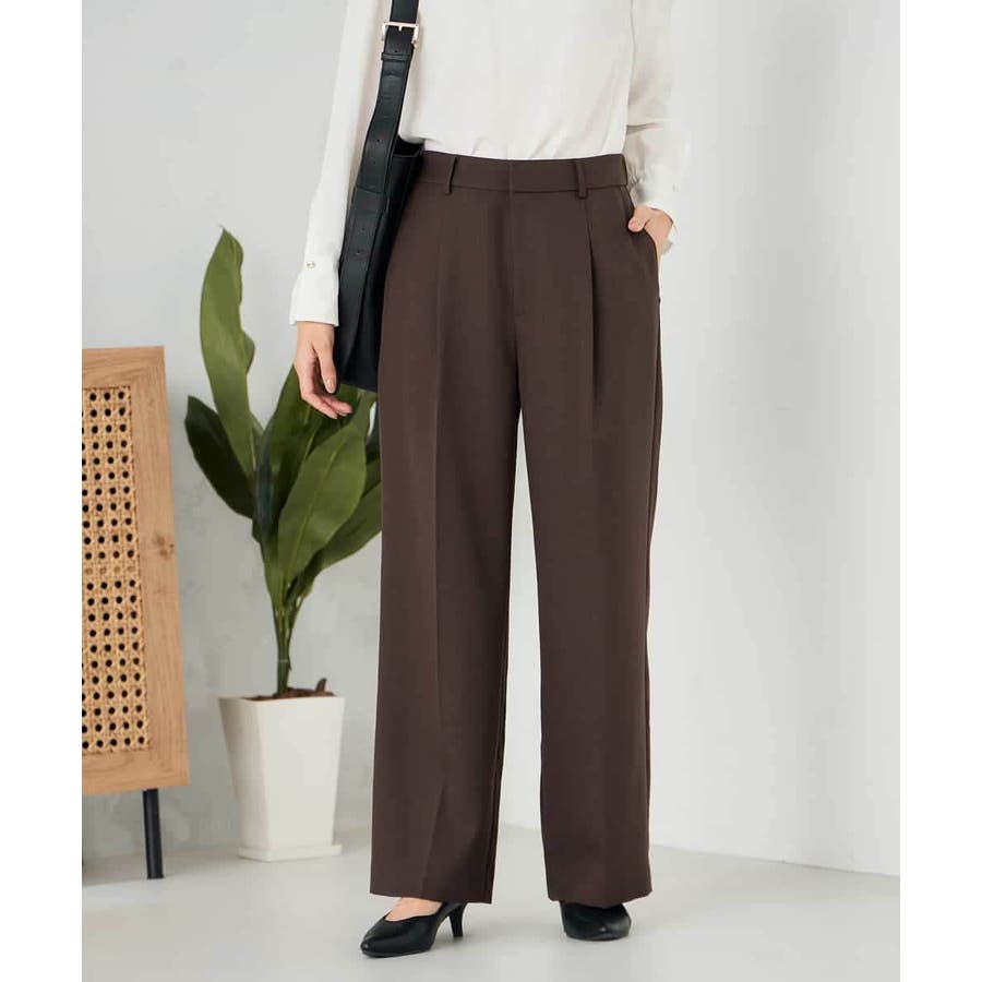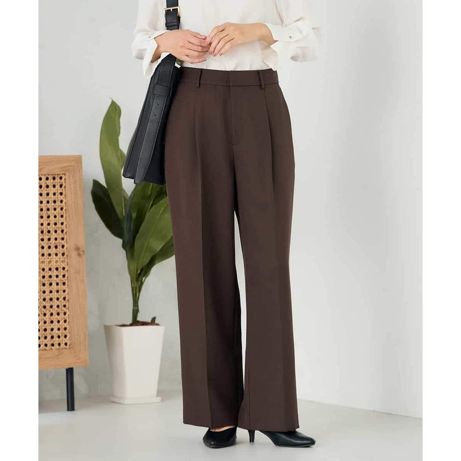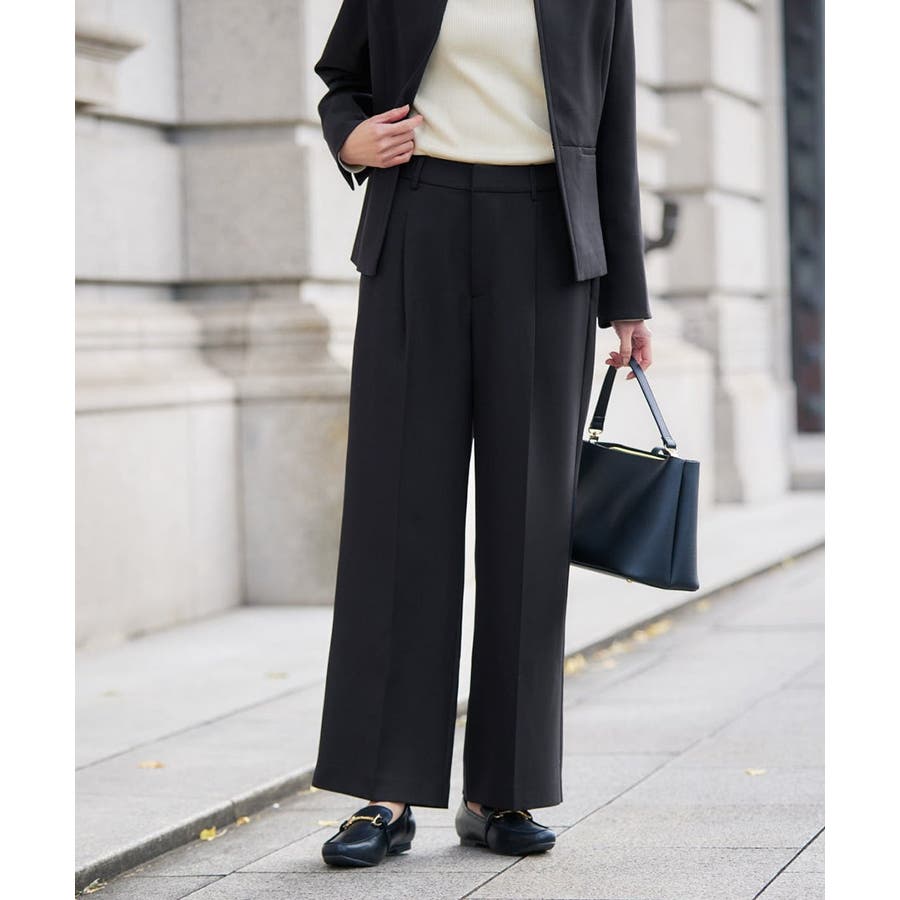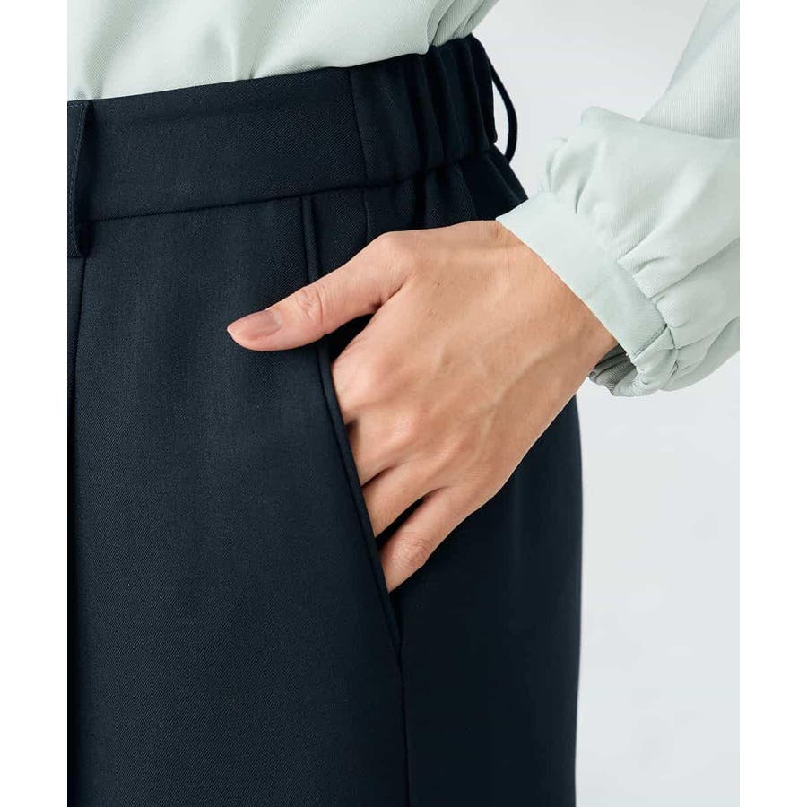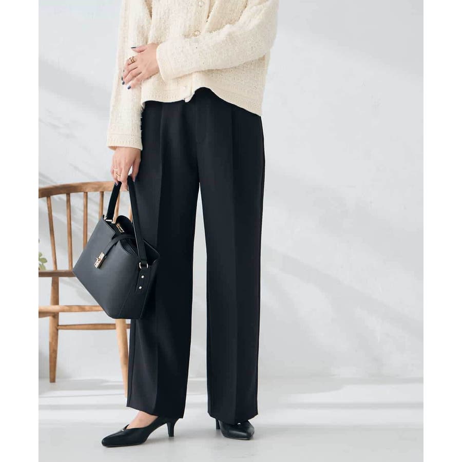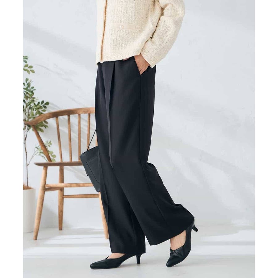 【洗える/イージーケア/ストレッチ】パウダーツイルワイドストレートパンツ
