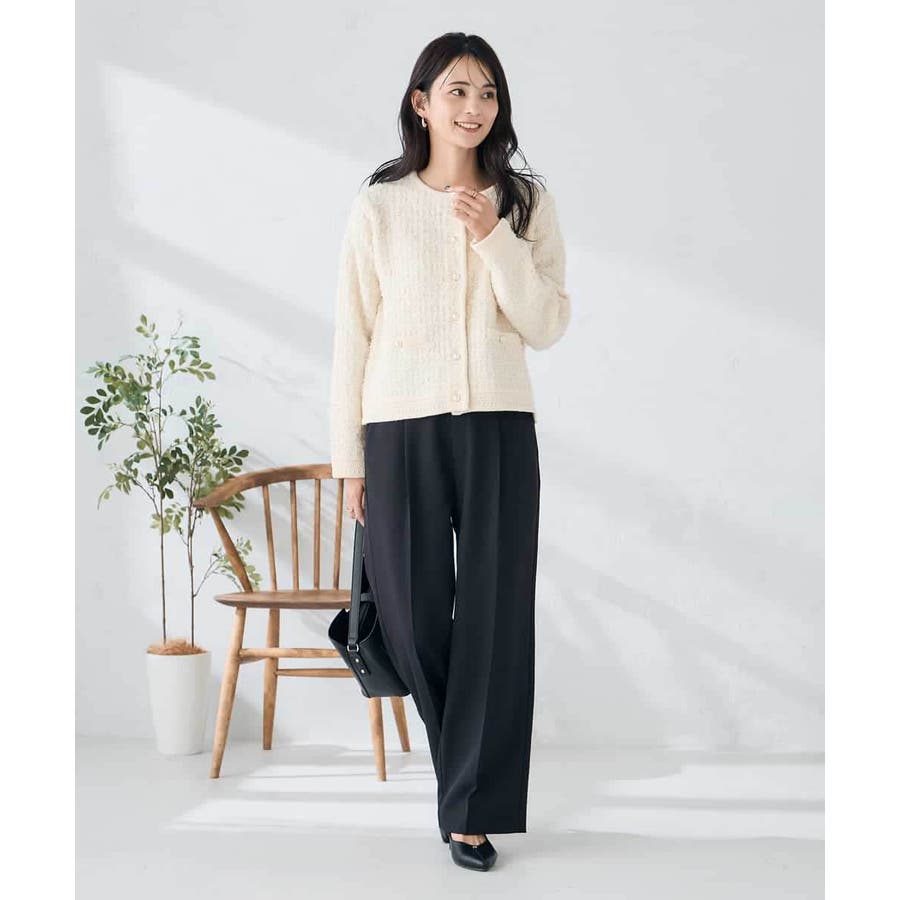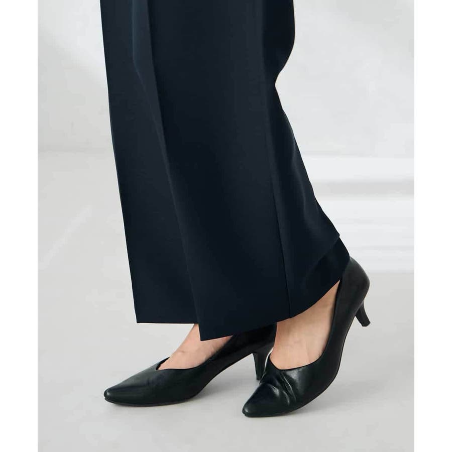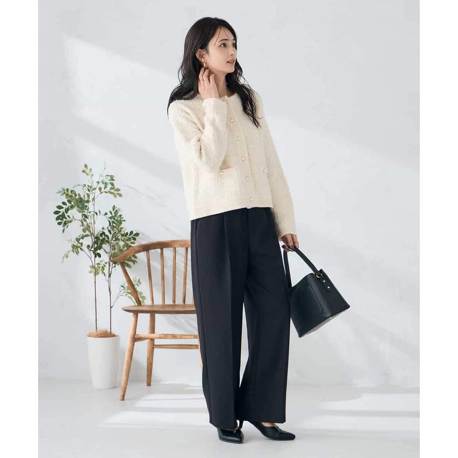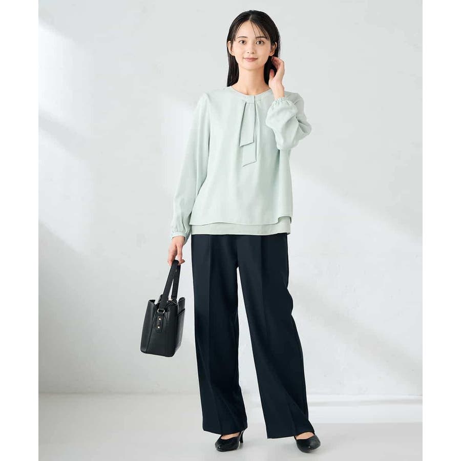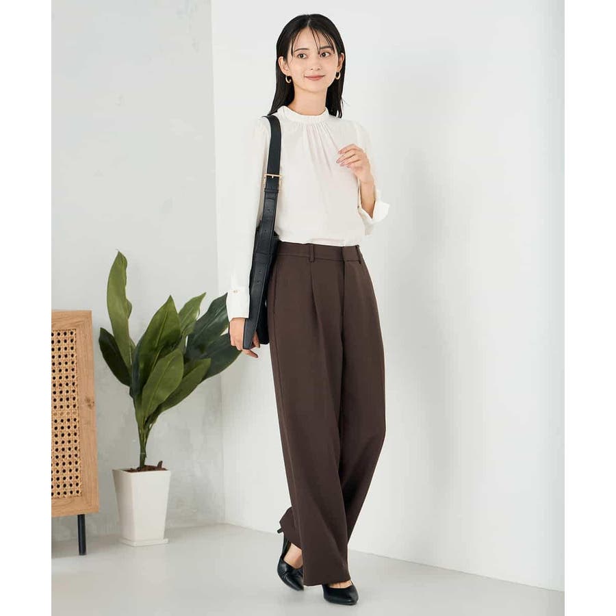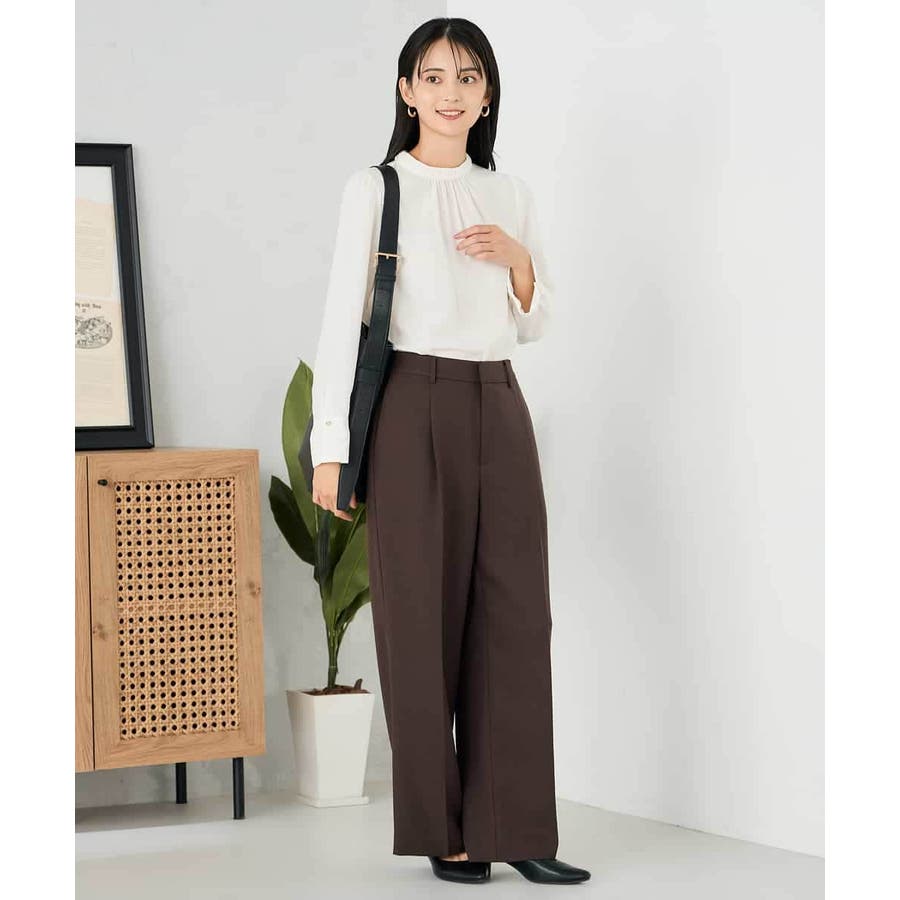 【洗える/イージーケア/ストレッチ】パウダーツイルワイドストレートパンツ