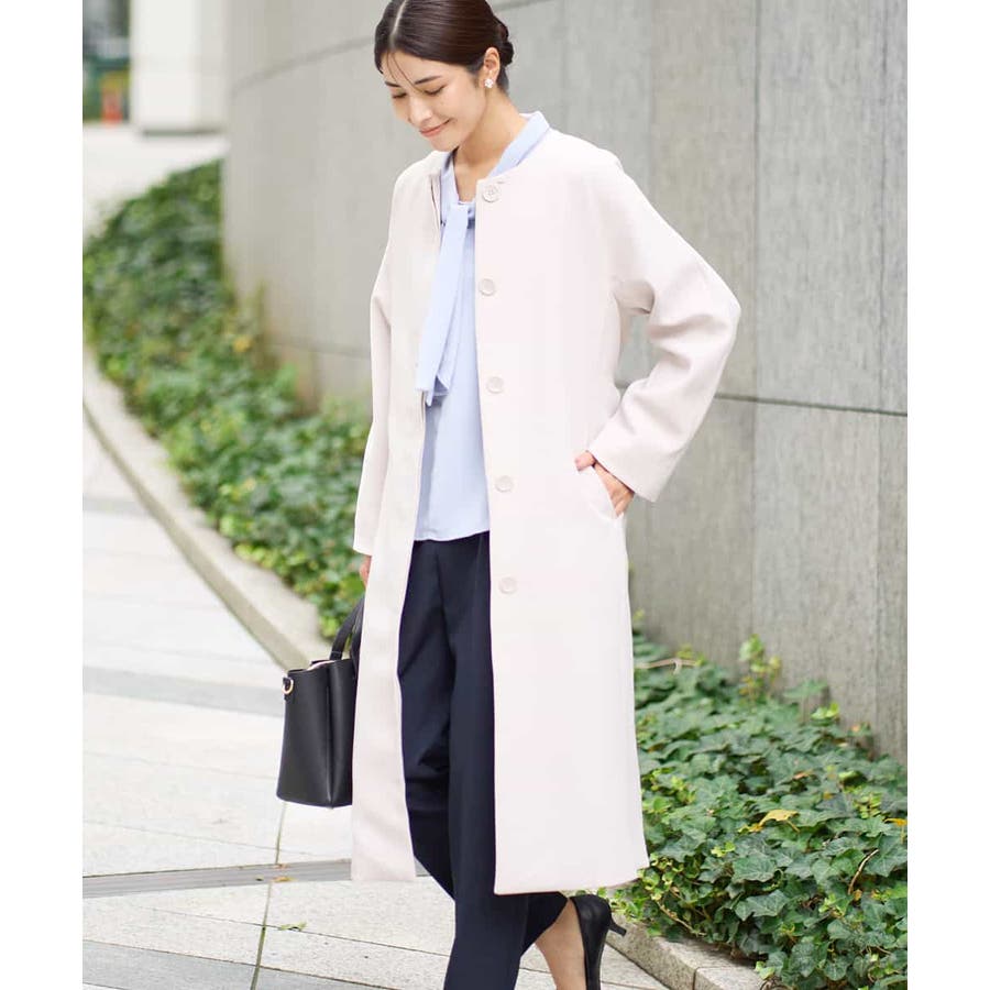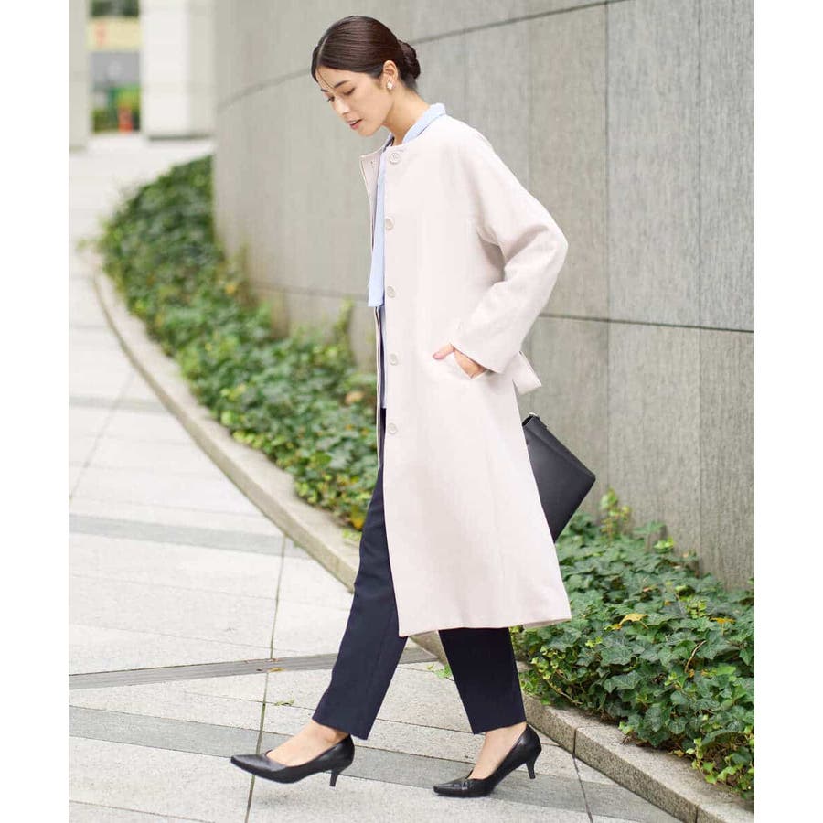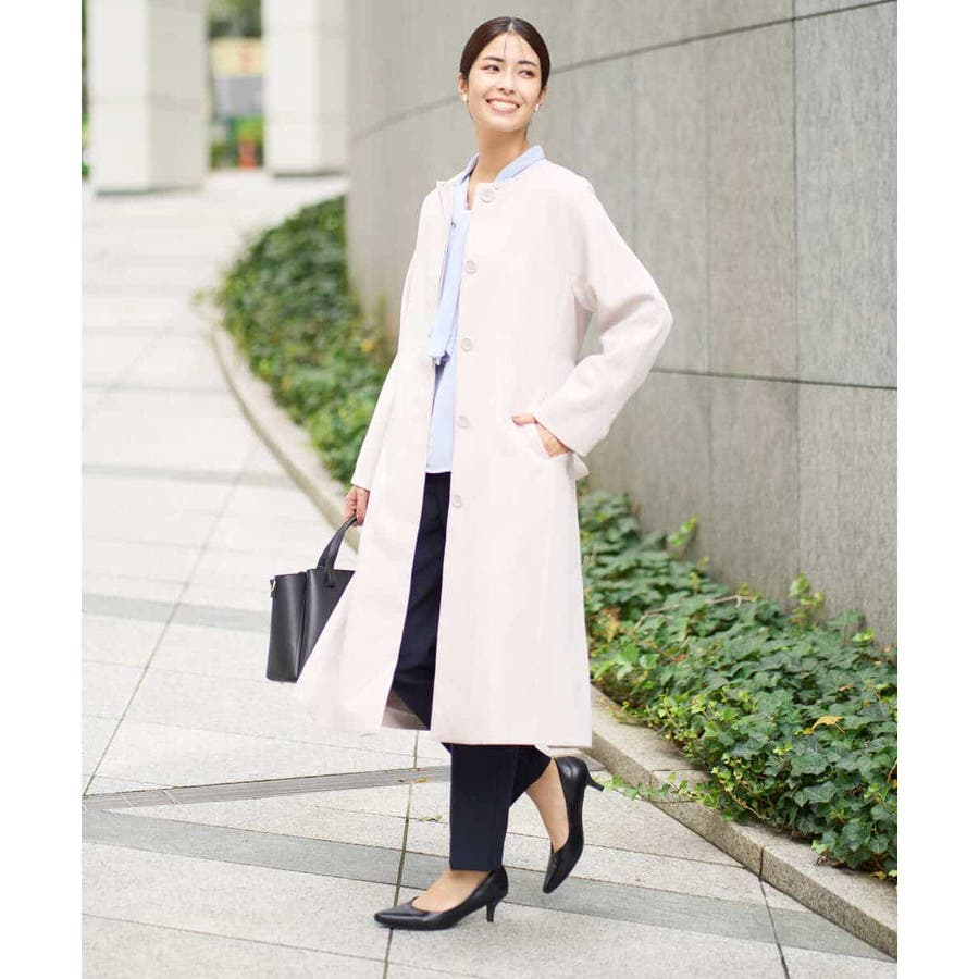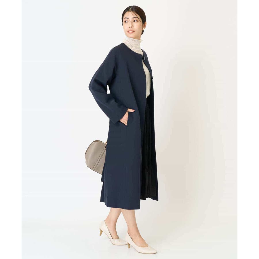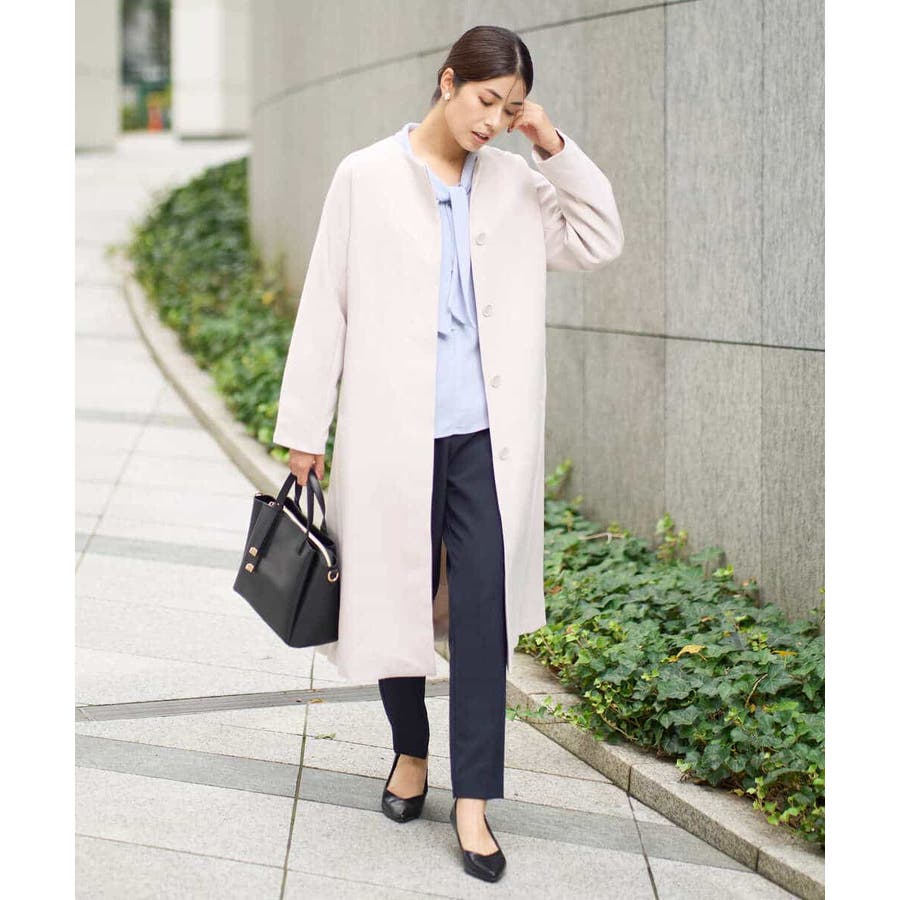 アームホールの切替えをなくすことで、フラットな見え方がきれいなコート