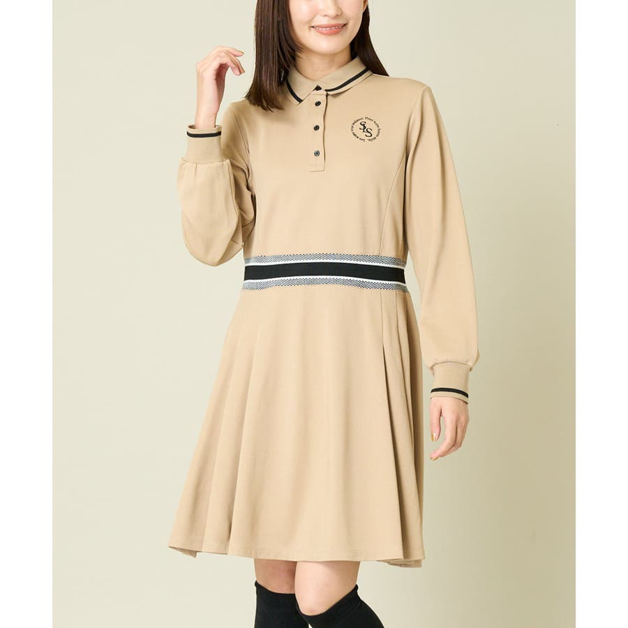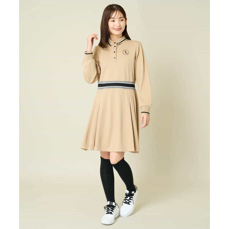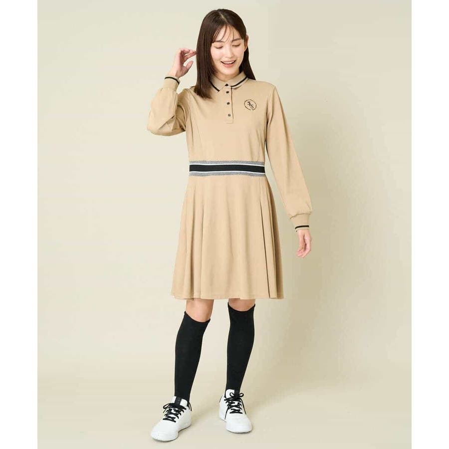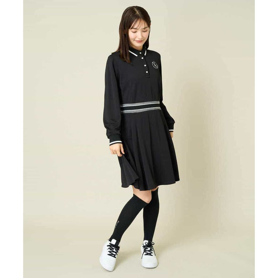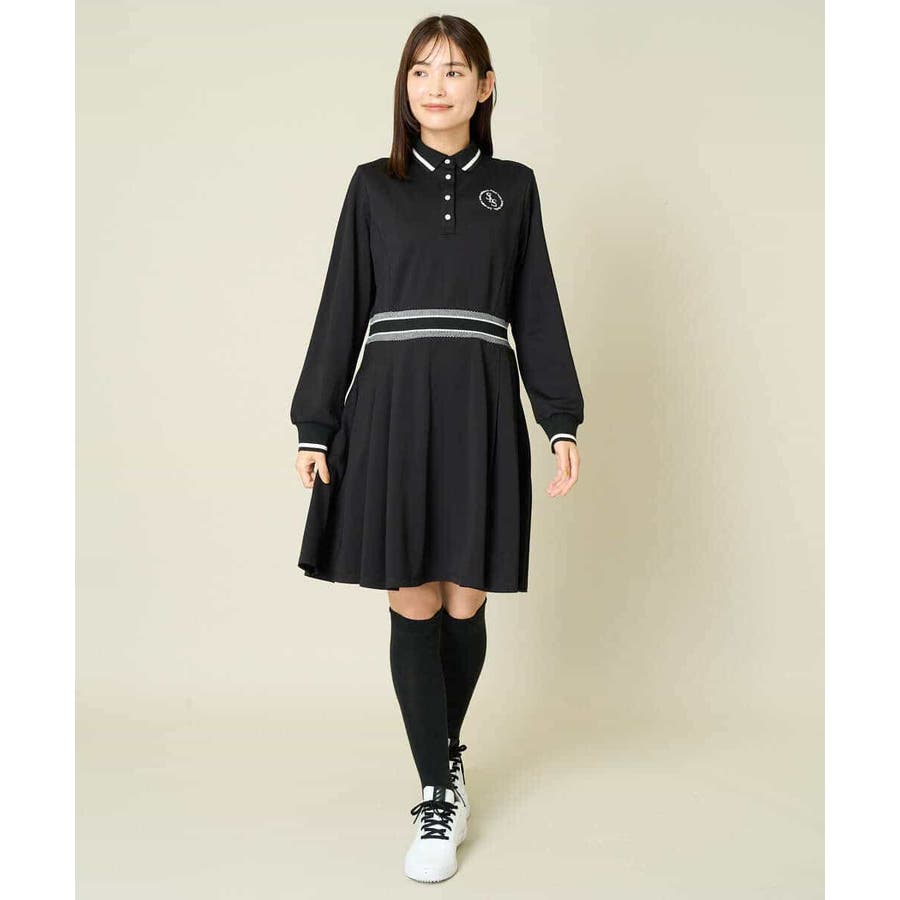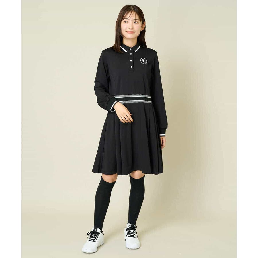 レディースゴルフウェア ラインリブポロシャツワンピース