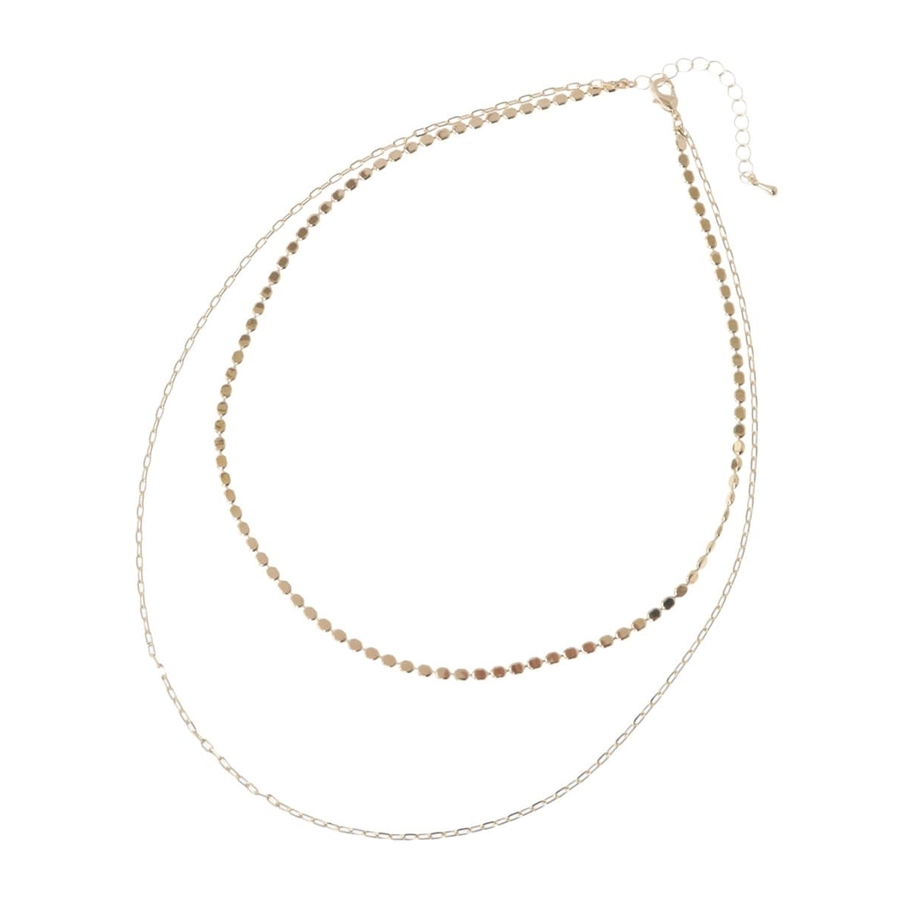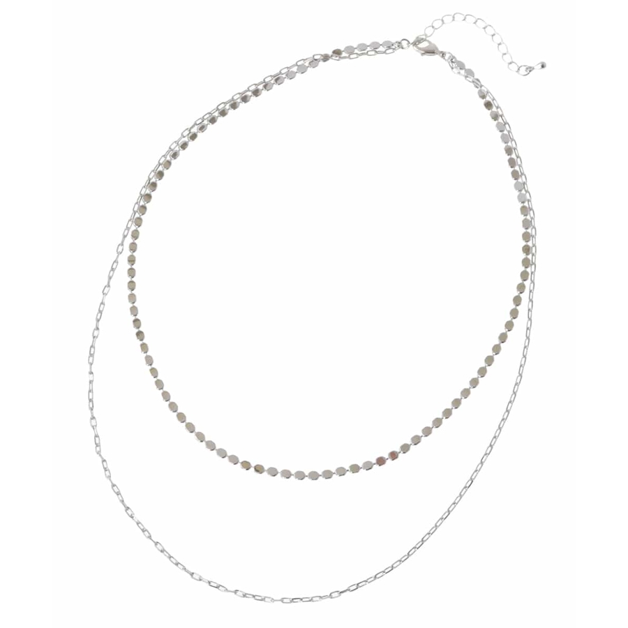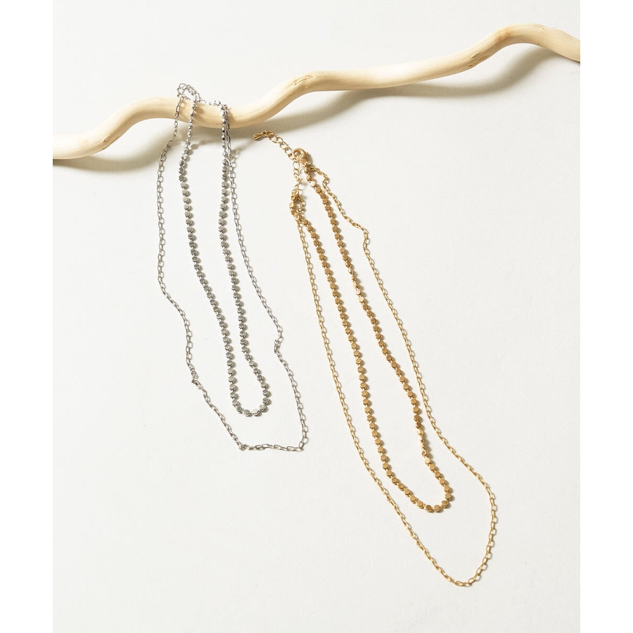 細身チェーンと個性的なチェーンの二連タイプのネックレス。