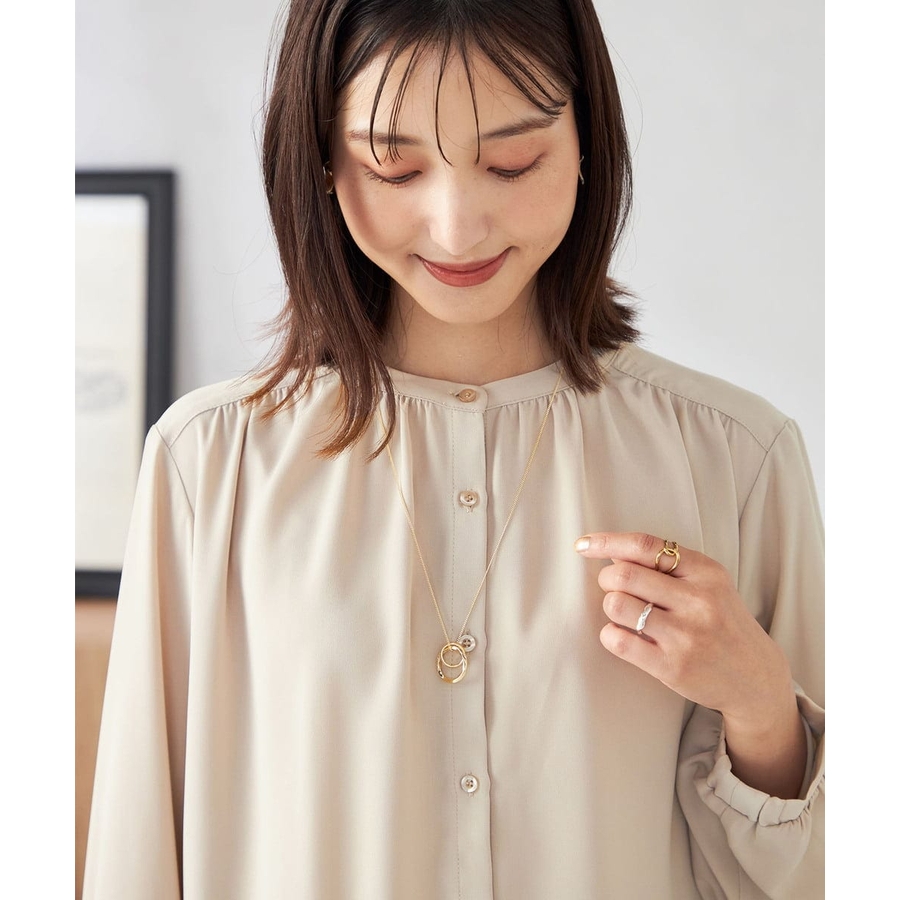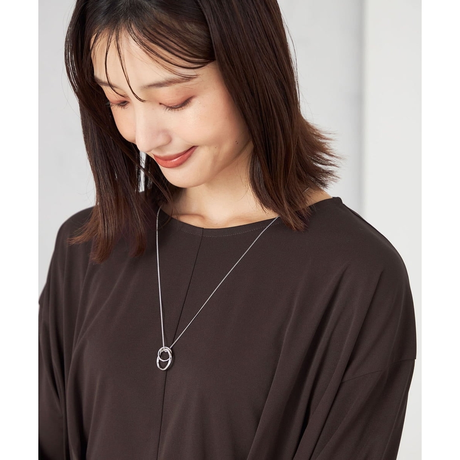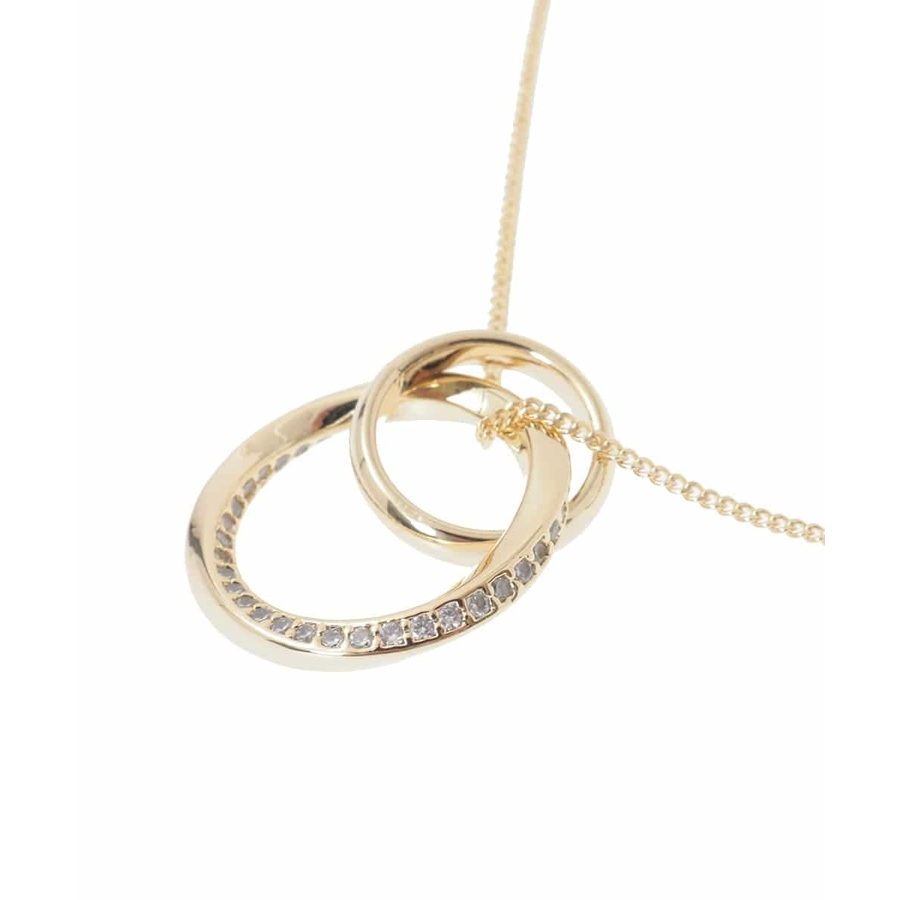 大小のリングが重なり合ったデザインのワントップネックレス。