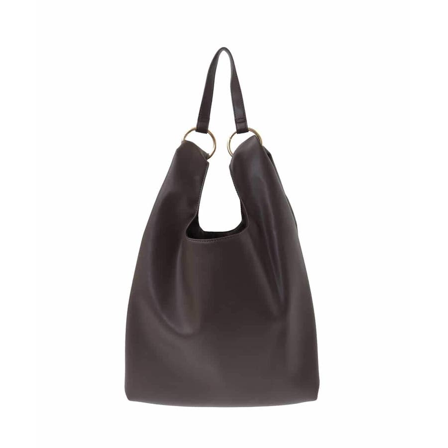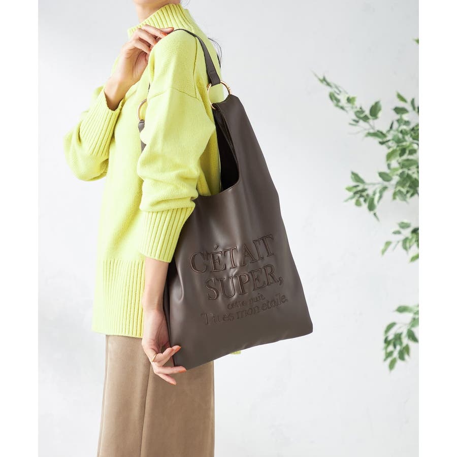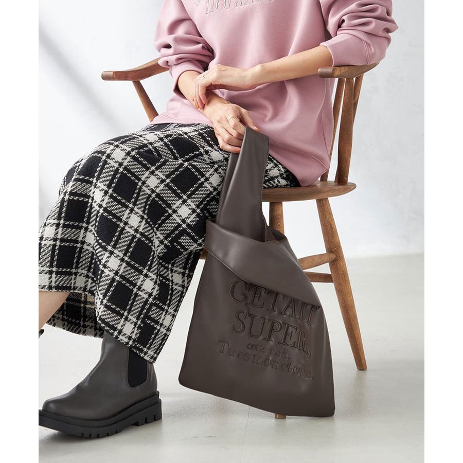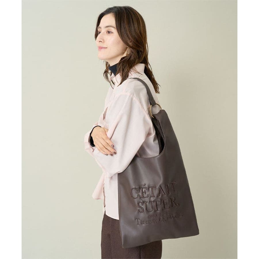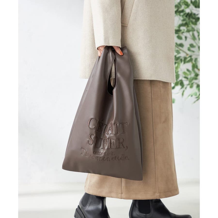 同色刺繍のロゴで合わせやすい大人のロゴトート。