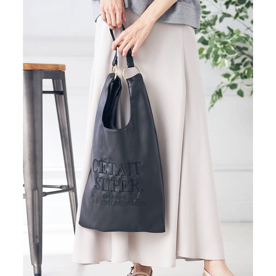 レザー見えする光沢のある生地に、ボリューム感のある刺繍が高見えするトレンドアイテムです。
