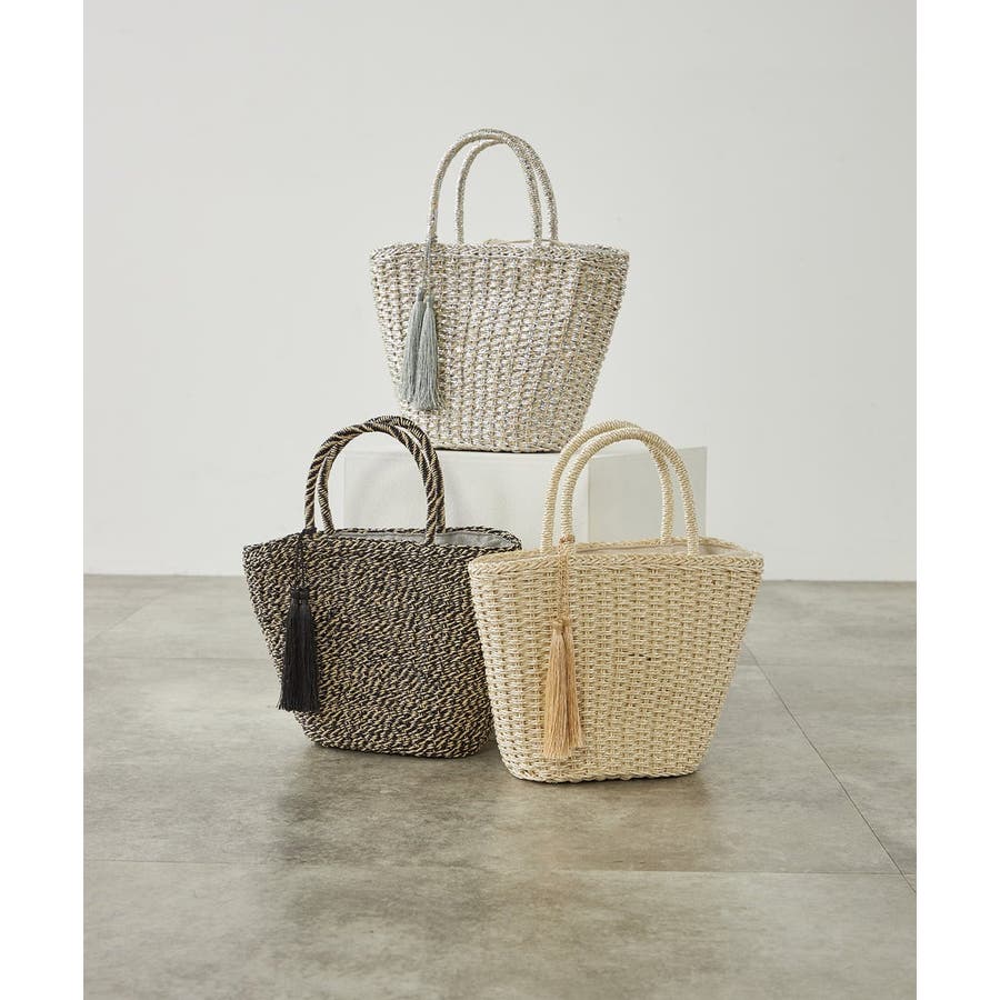 メタリックフィルムとペーパーMIXのカゴバッグ