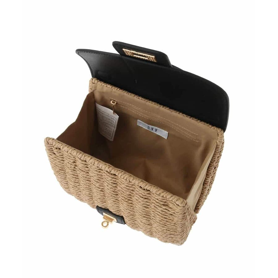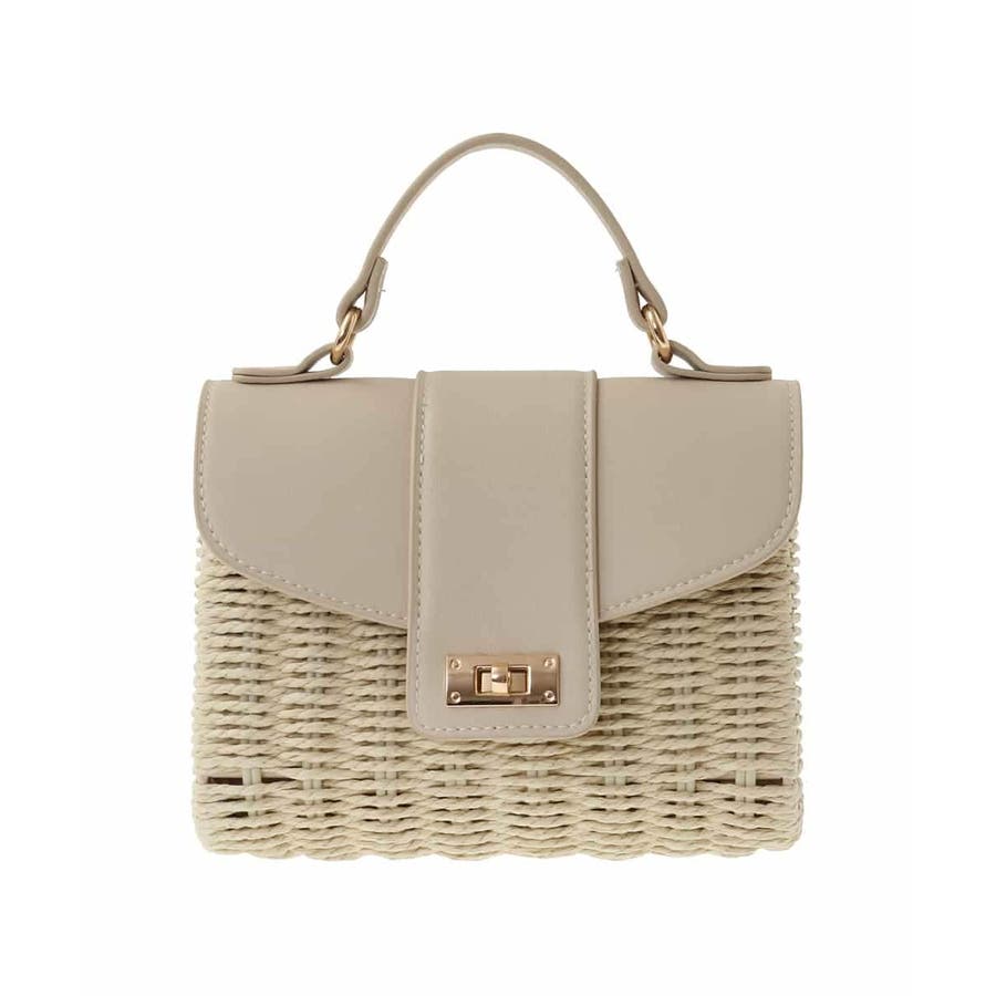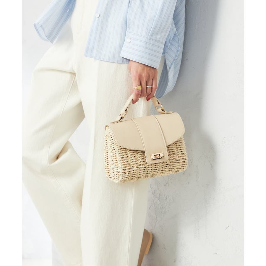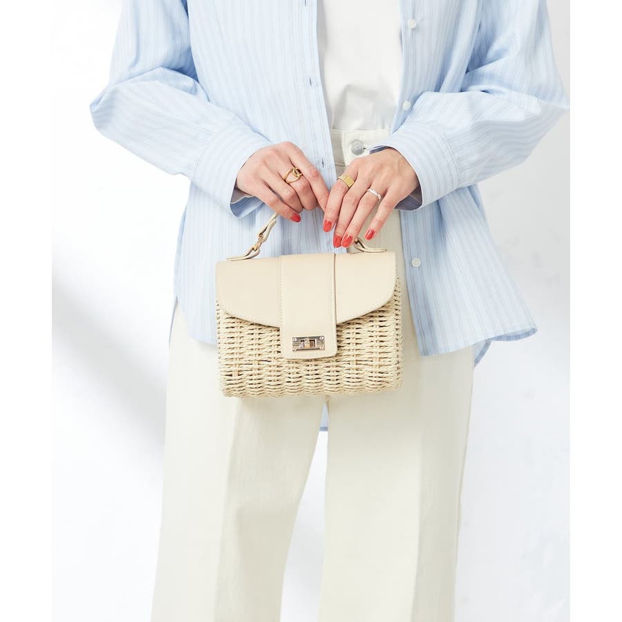 夏らしい素材のフラップ型デザインで、上品な印象に。
