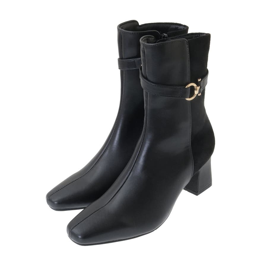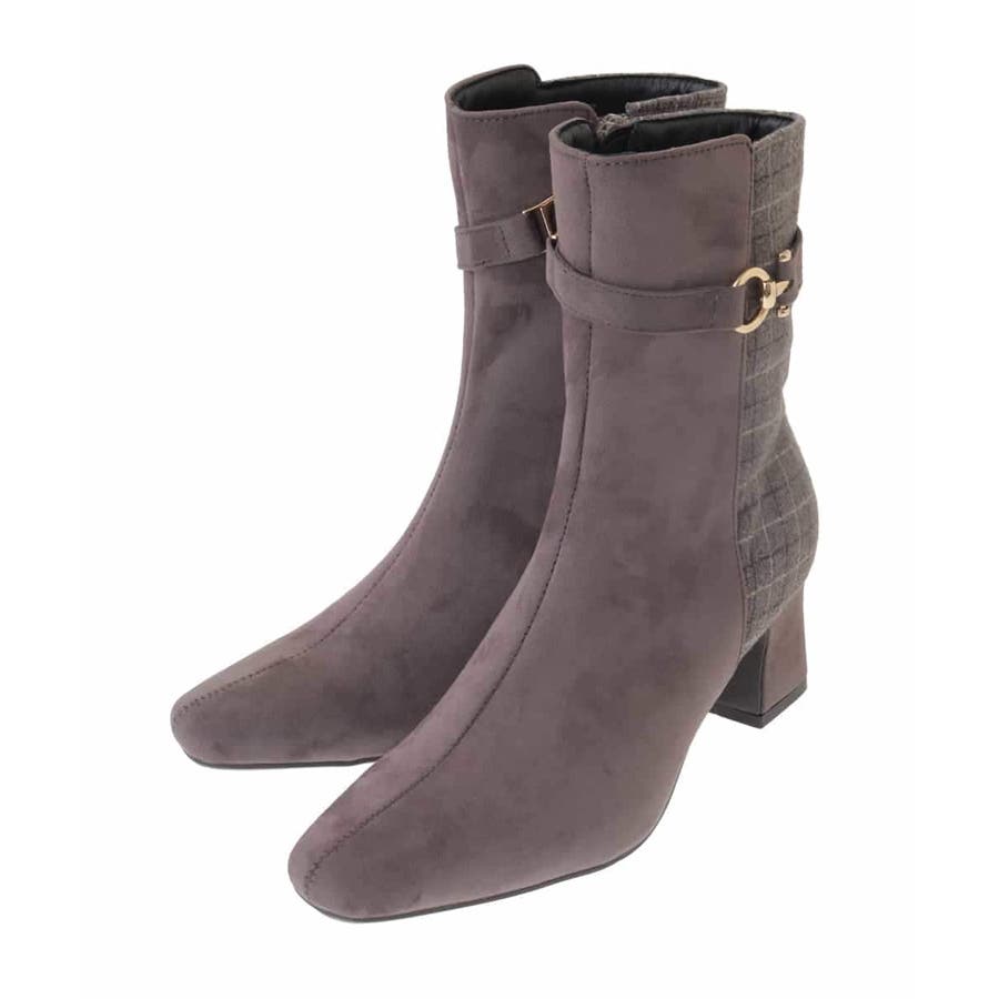 ・ブラックは合皮×スエード、ベージュはチェック柄×スエード