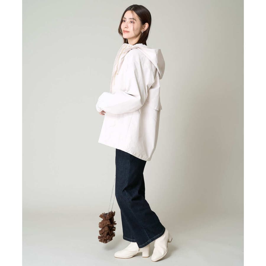 雨の日も気を遣わず着用できるフェイクレザー仕様。