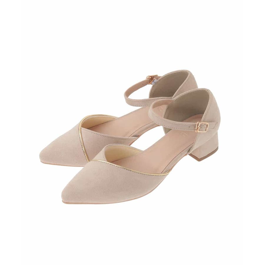 セパレートデザインが上品な印象のストラップパンプス。