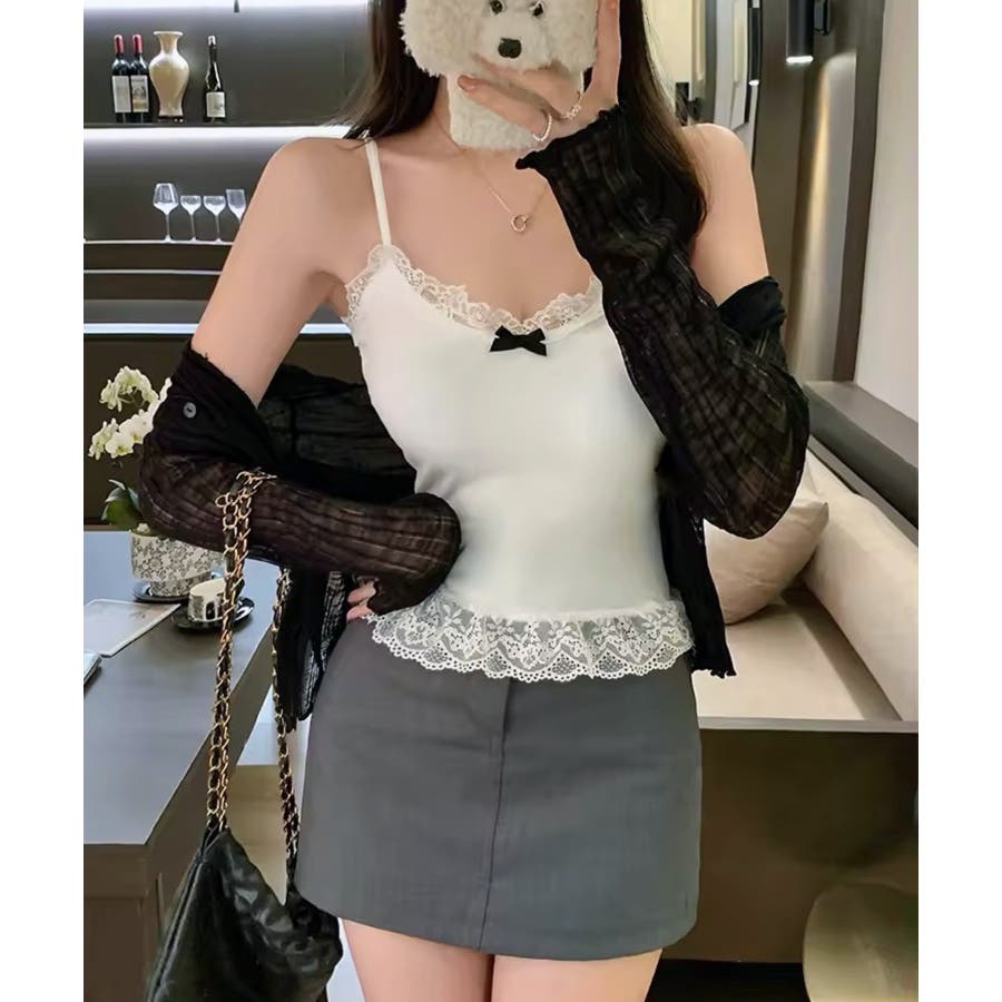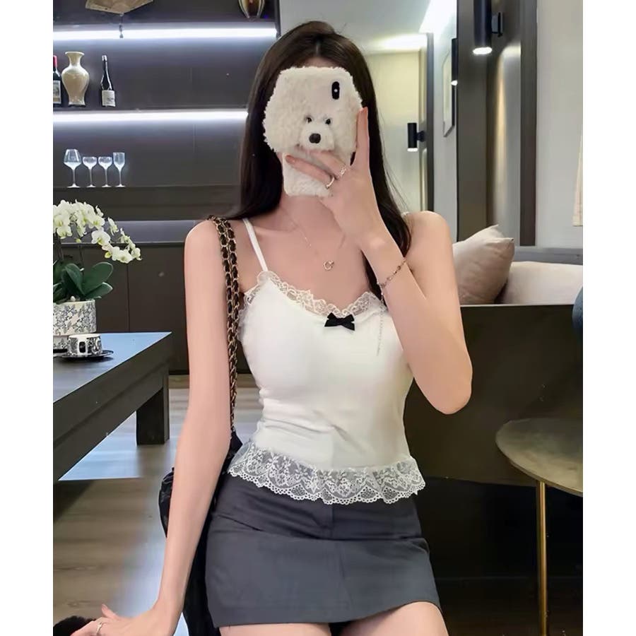 裾レース×チビリボンが可愛いフェミニンキャミ