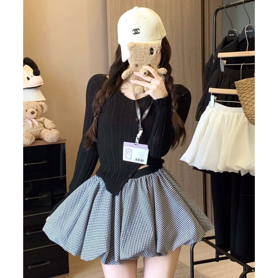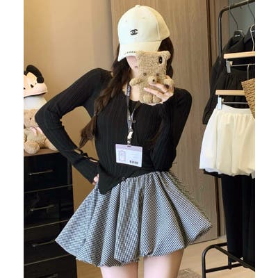 ・コンパクトトップスを合わせて韓国ガーリーに