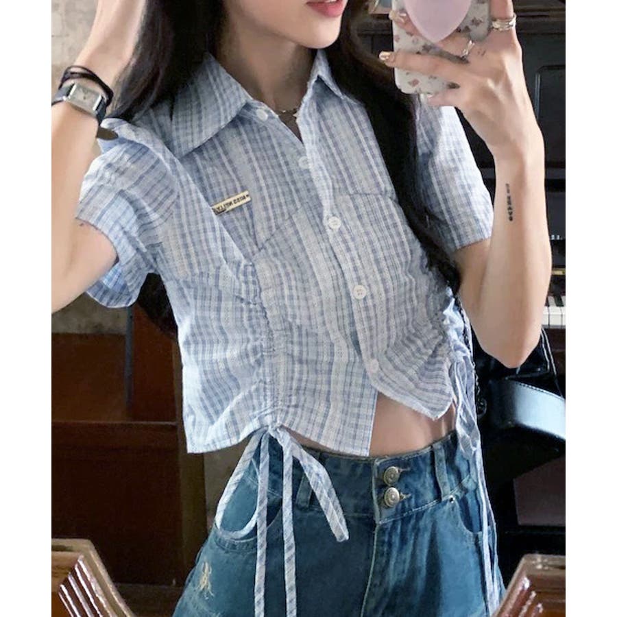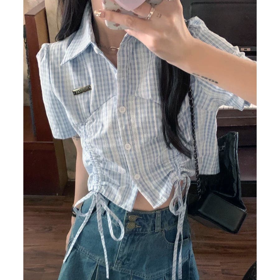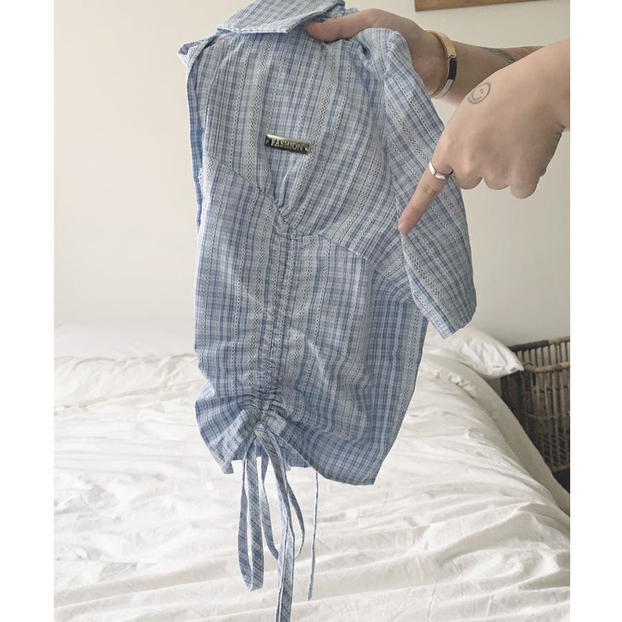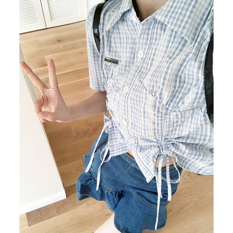 ドロスト仕様でくしゅっと感を調整できるチェックシャツ