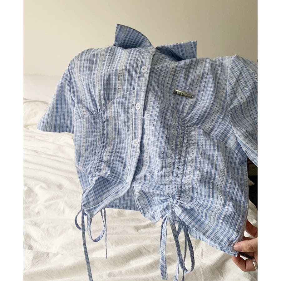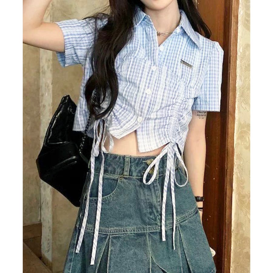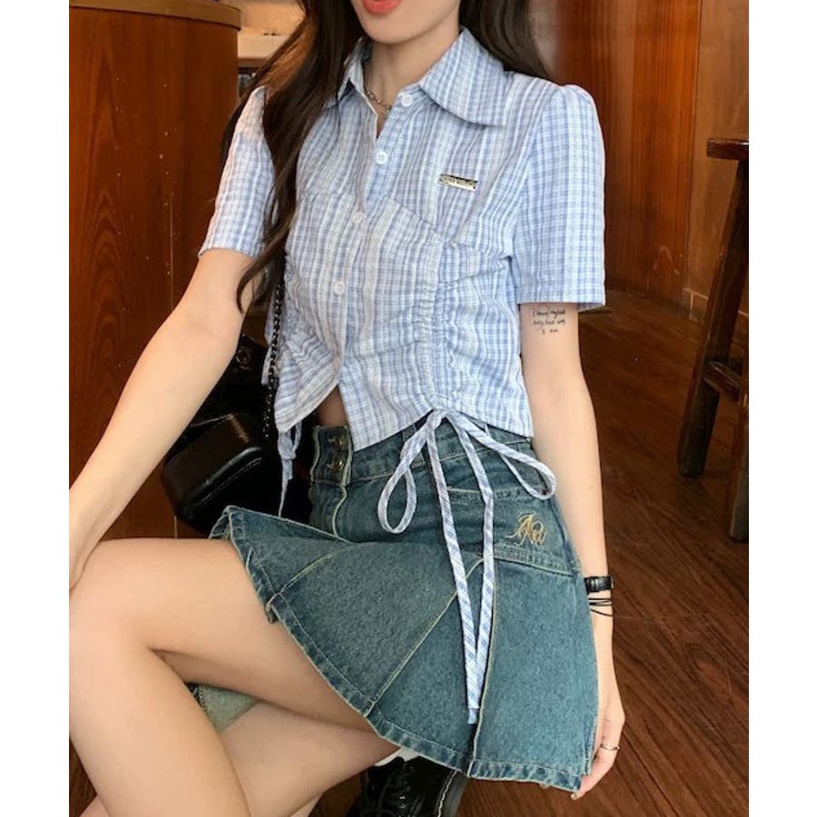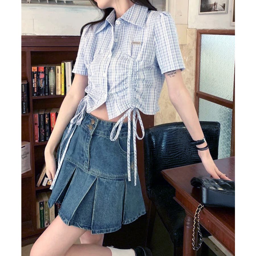 ドロスト仕様でくしゅっと感を調整できるチェックシャツ