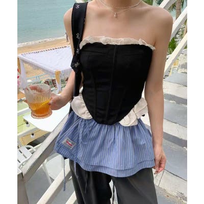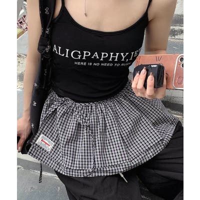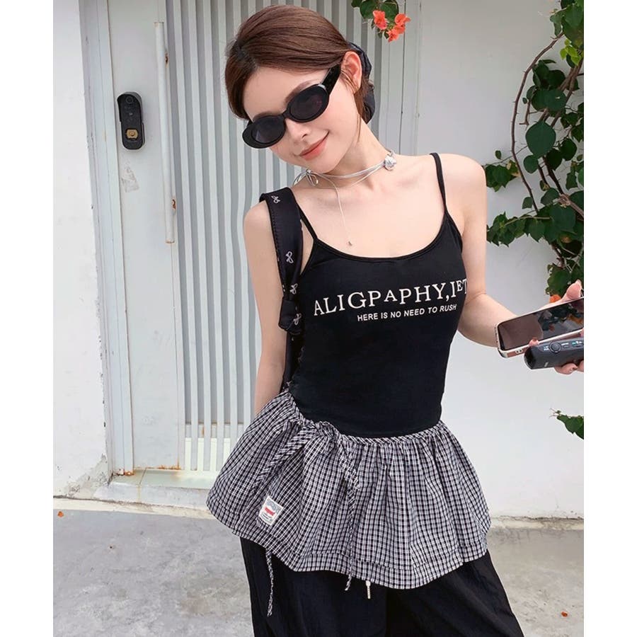 ・タンクトップと合わせて韓国ガーリーに