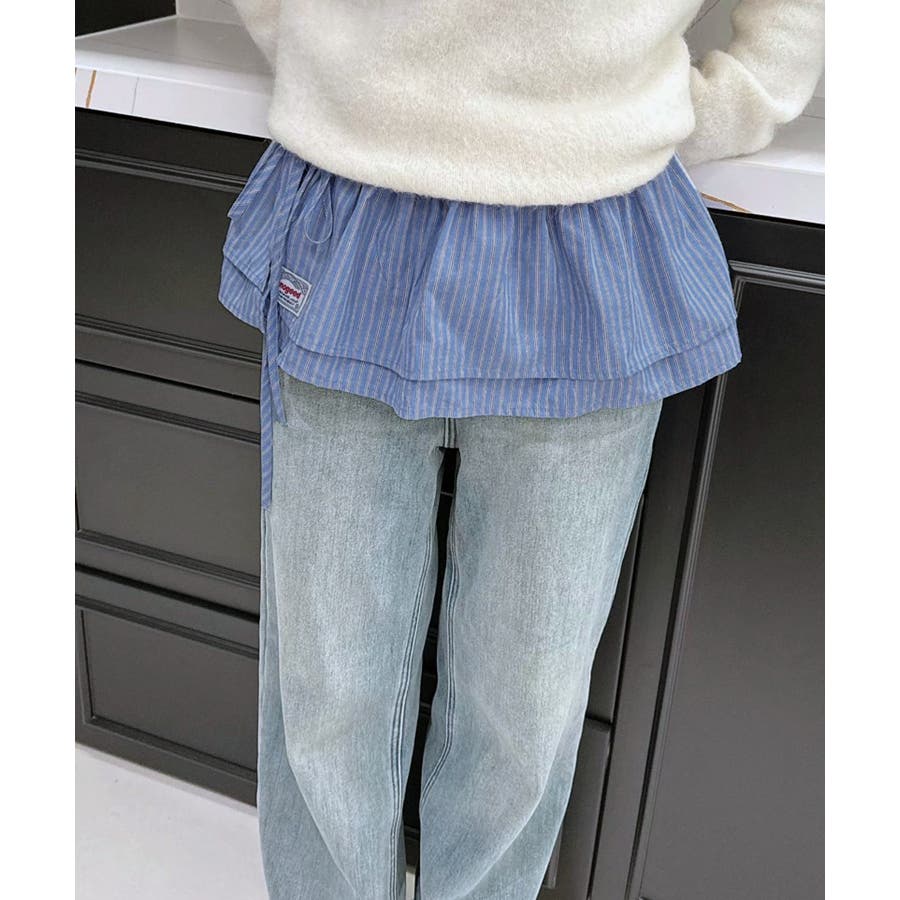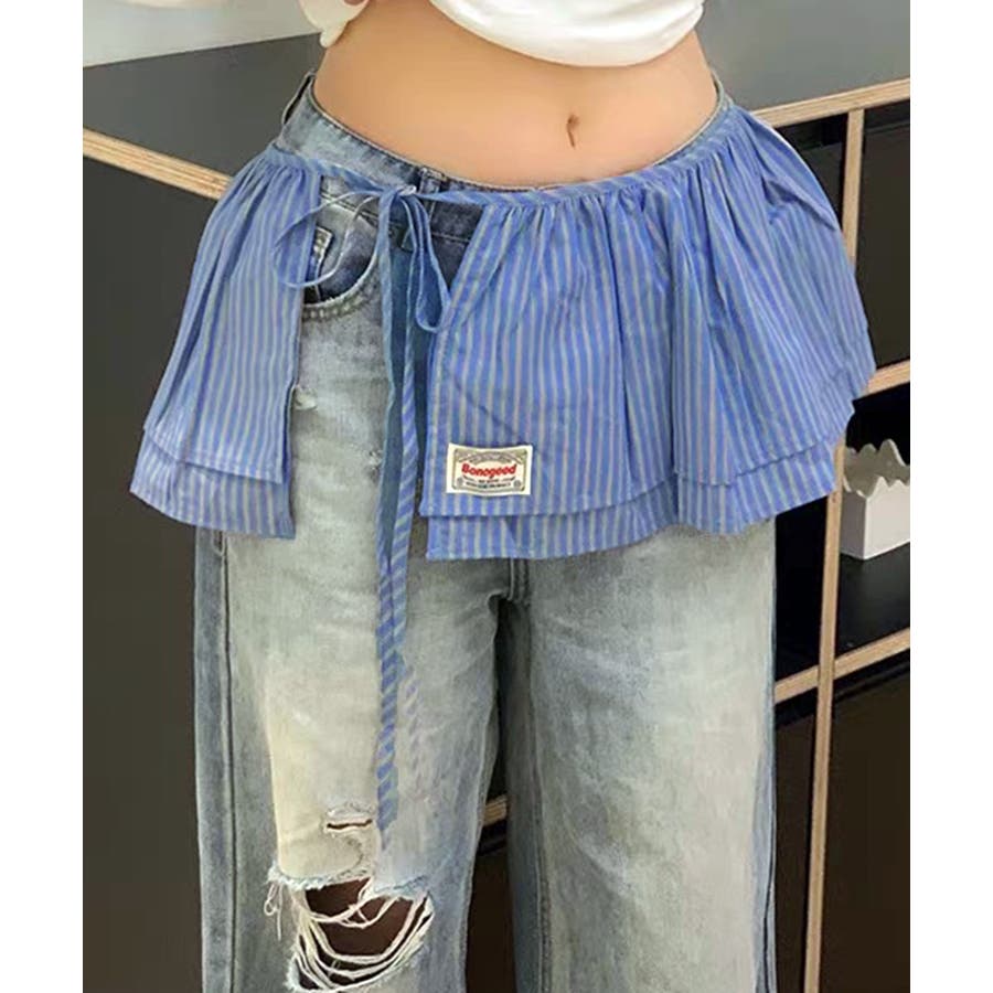 パンツやスカートの上から巻いて、簡単にレイヤードスタイルが完成