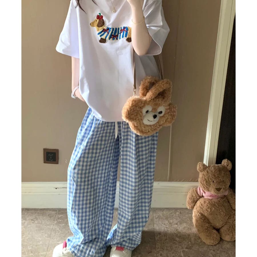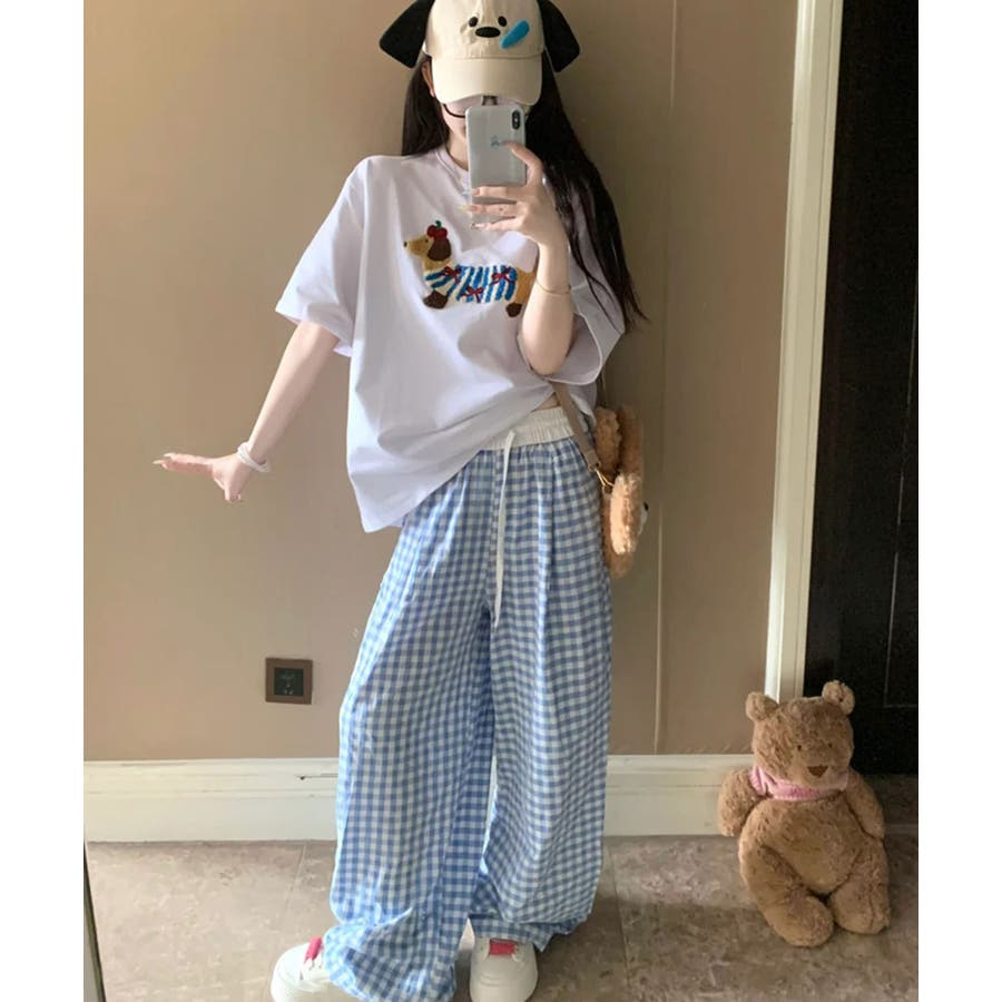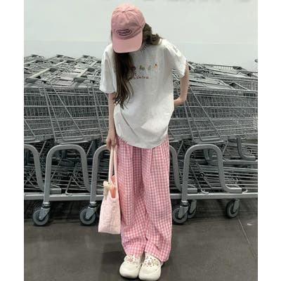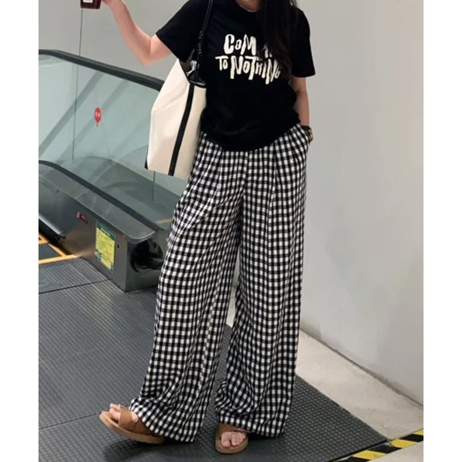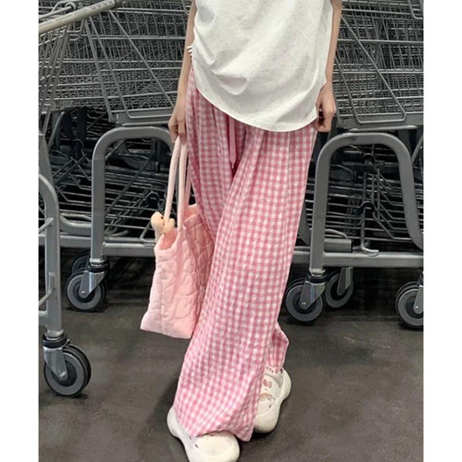 《ギンガムチェックドロストワイドパンツ》