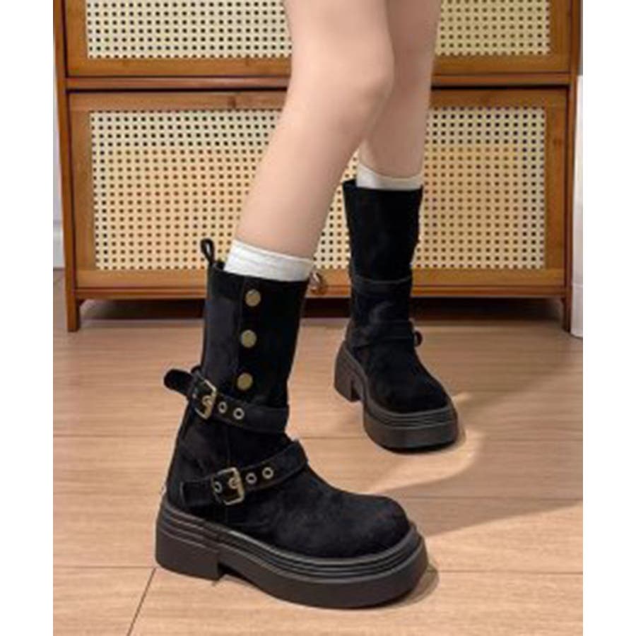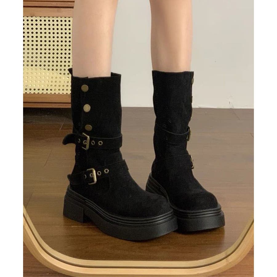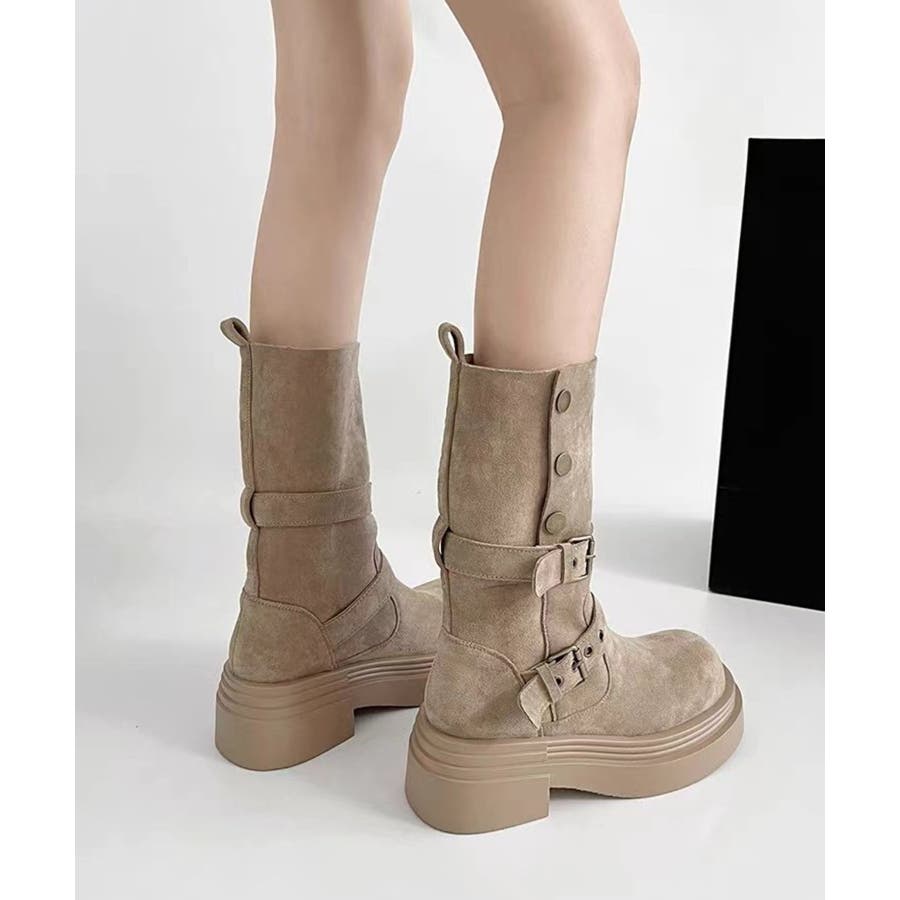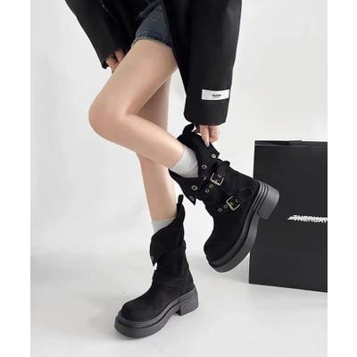 《ボタン付きフェイクスエード エンジニアブーツ》