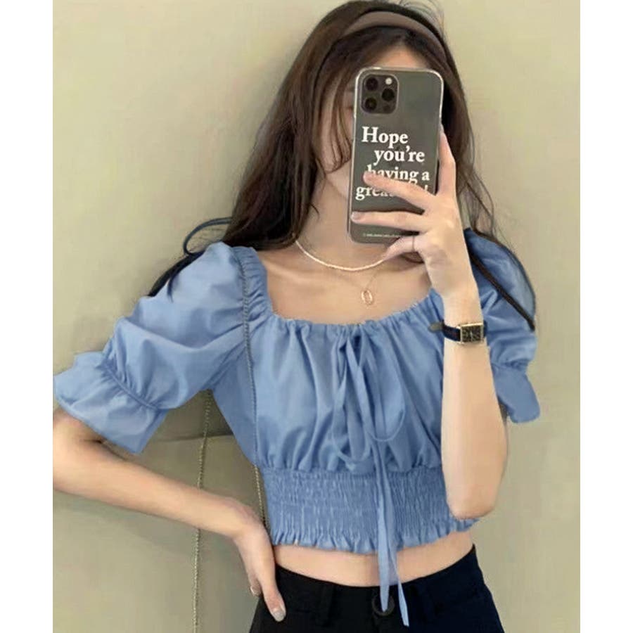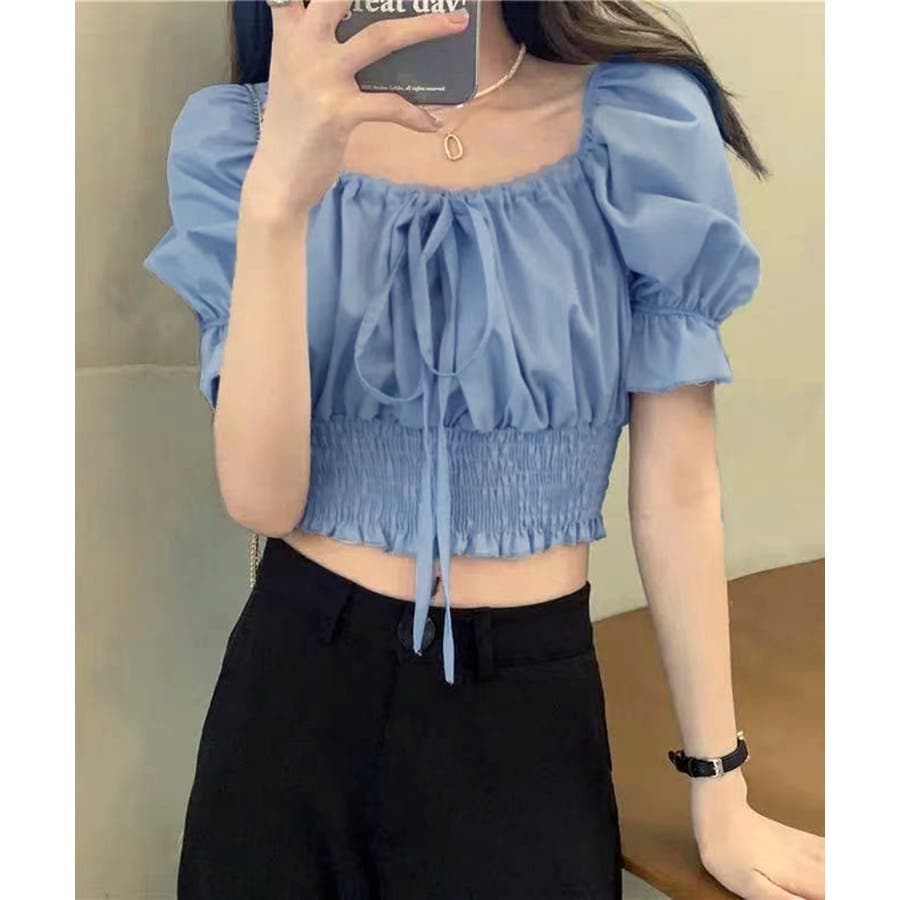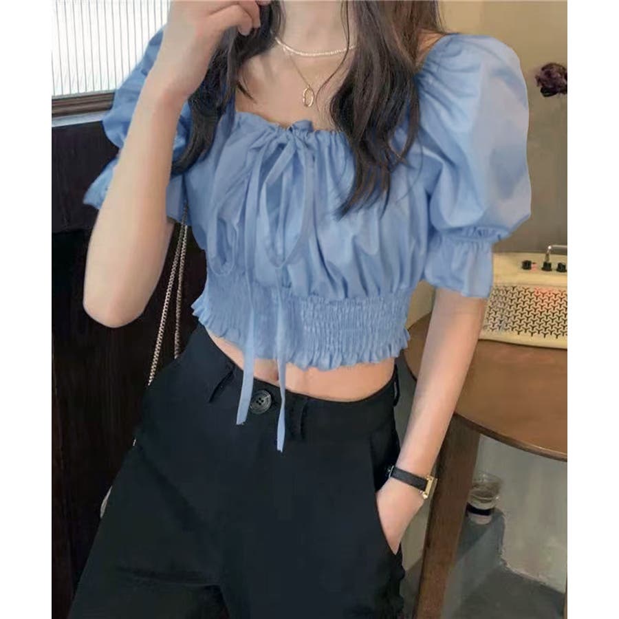 《フロントリボンギャザーパフスリーブ ブラウス》