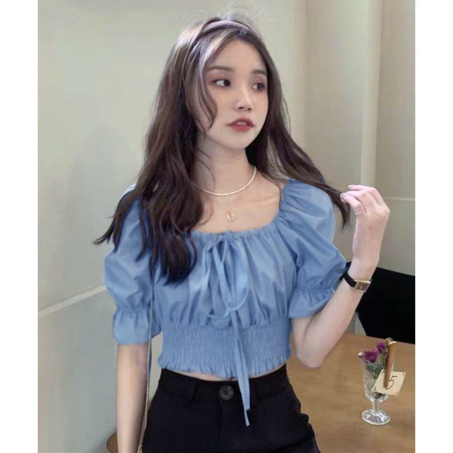 程よいパフスリーブが女性らしさを引き立て、韓国トレンドらしい着こなしが叶う一枚です
