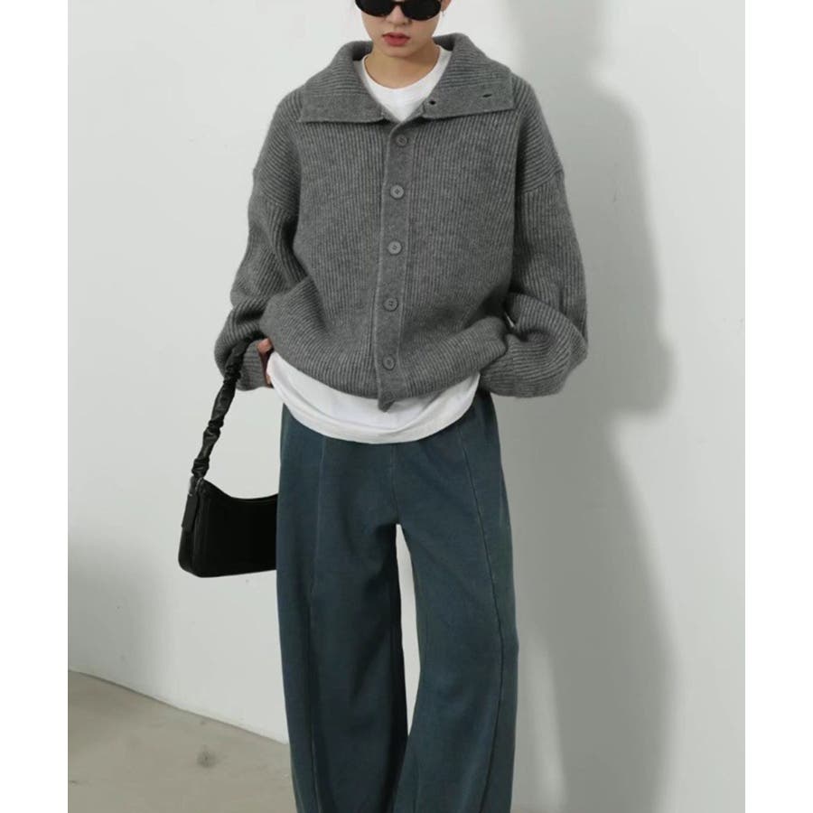 《衿付きリブニットカーディガン》