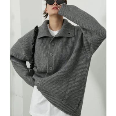 衿付きリブニットカーディガン