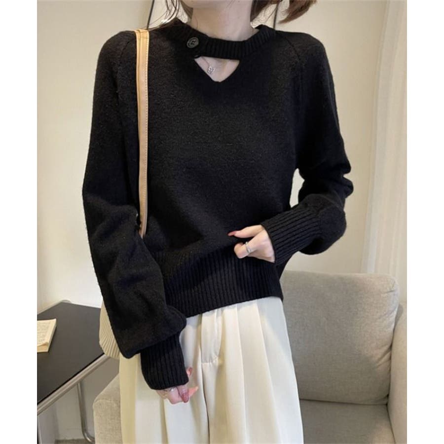 《ボタン付きデザインニットプルオーバー》