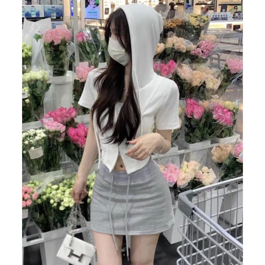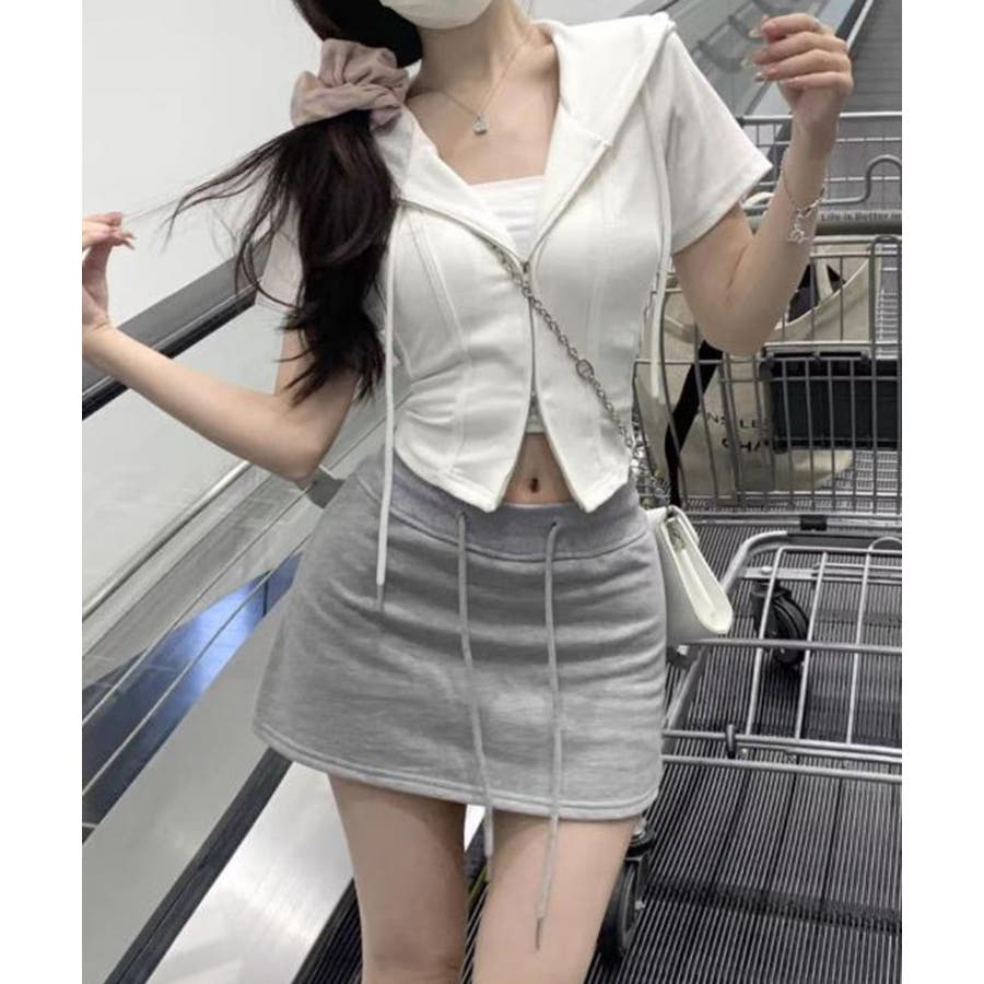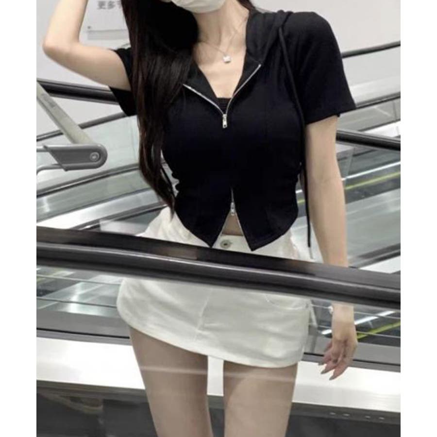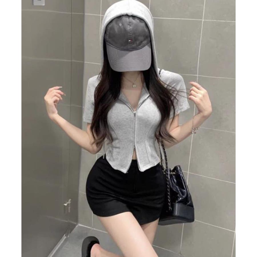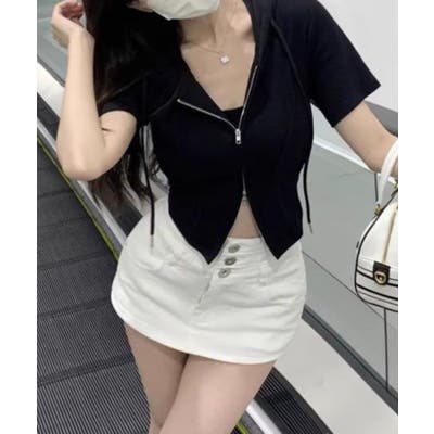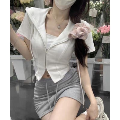 コンパクトなクロップド丈が特徴のジップアップパーカー