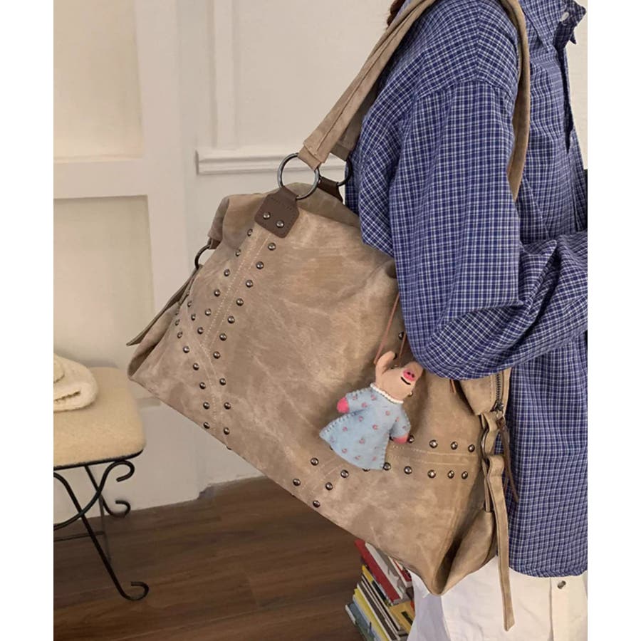 スタッズが映えるヴィンテージライクショルダーバッグ