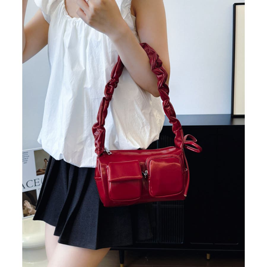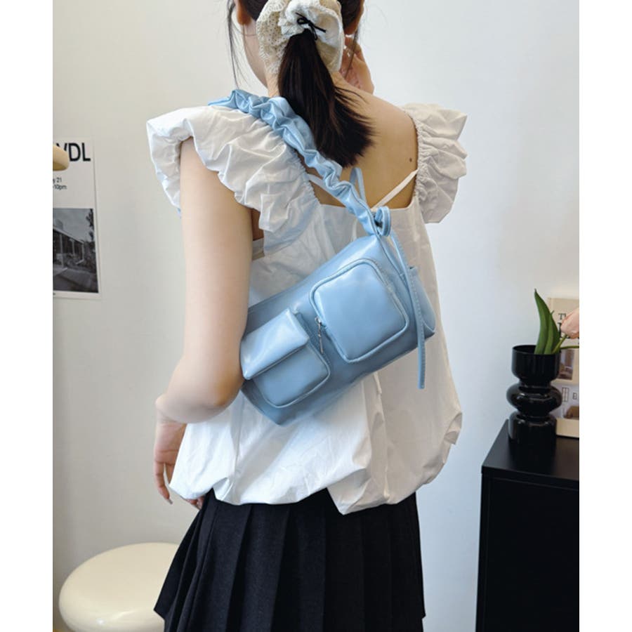《フロントポケットPUショルダーバッグ》