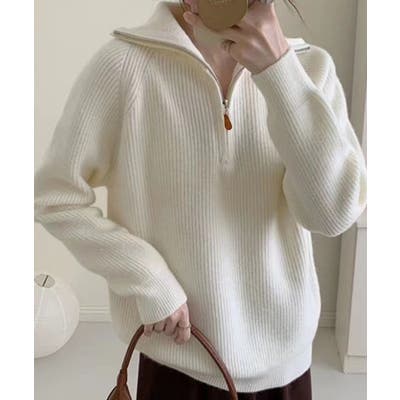 スタンドネック×ハーフジップデザインを取り入れた、トレンド感のあるニットトップス