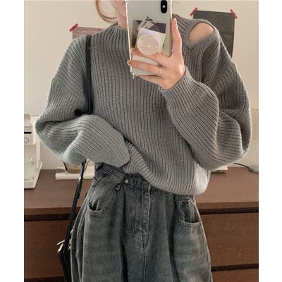 肩部分にカットデザインを施した、さりげない肌見せがポイントのニットトップス