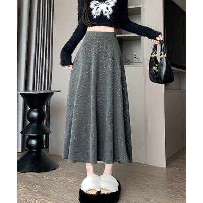 繊細なラメを織り込んだ素材が上品にきらめく、存在感のあるロングスカート