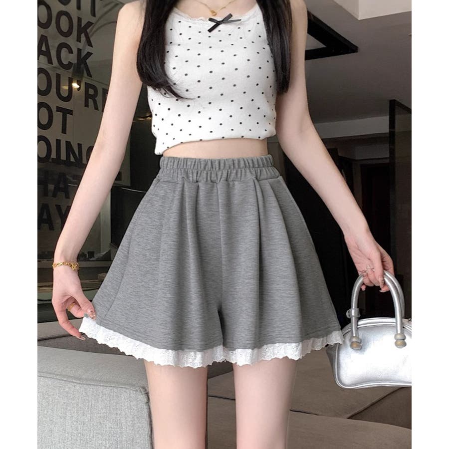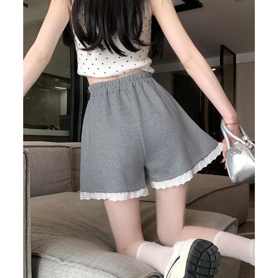 リラックス感のあるスウェット素材に、甘めのレースをプラス