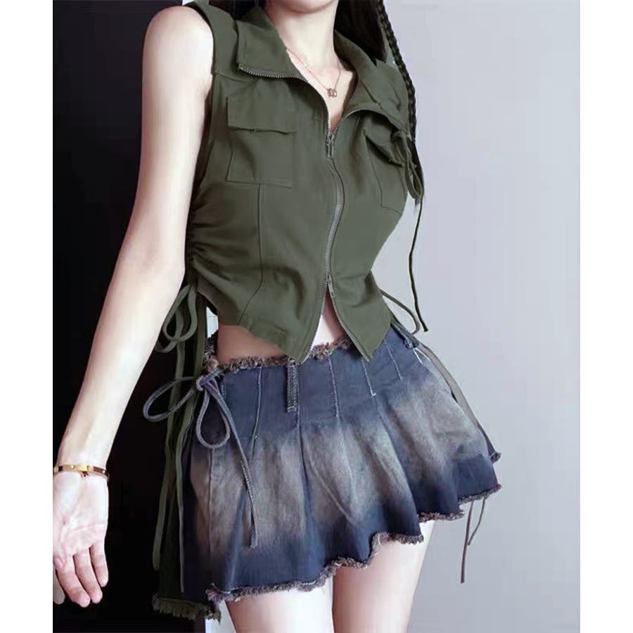 サイドシャーリング Wポケット スタンドショートベスト