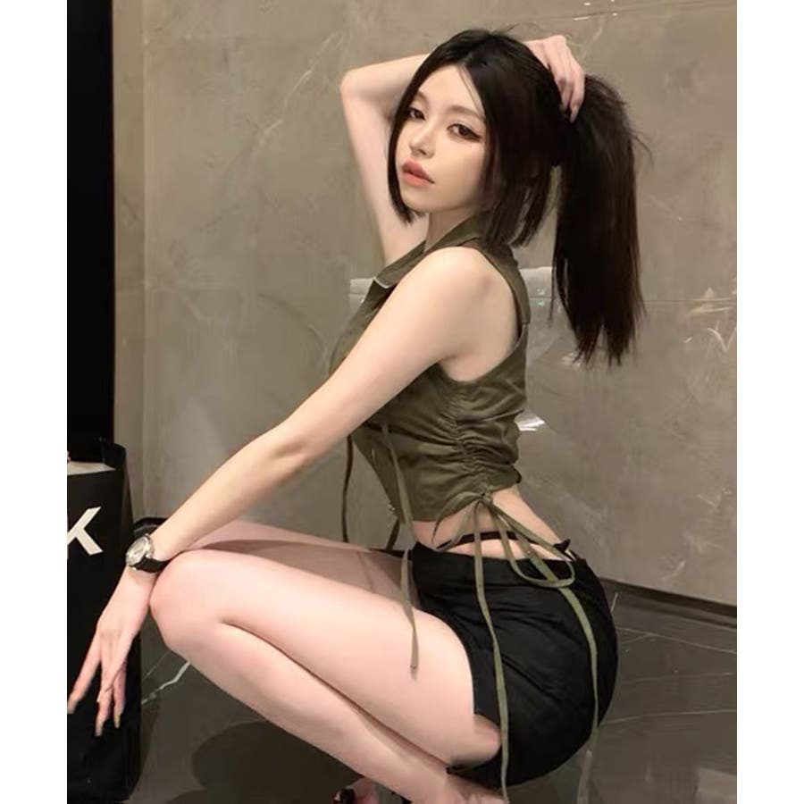 サイドのシャーリングデザインがシルエットに立体感を与えるショート丈ベスト