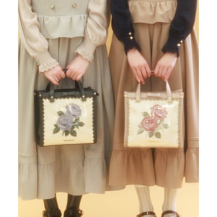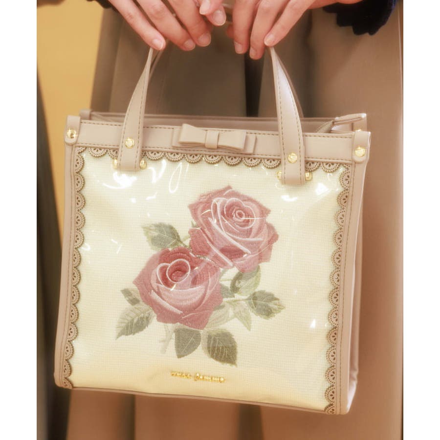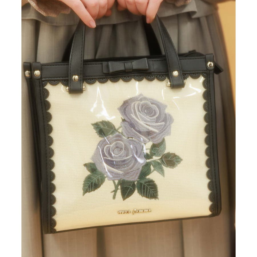 ローズ刺繍スクエアバッグ