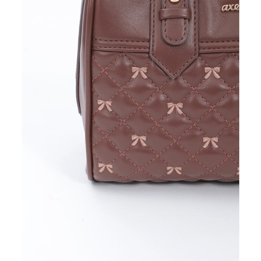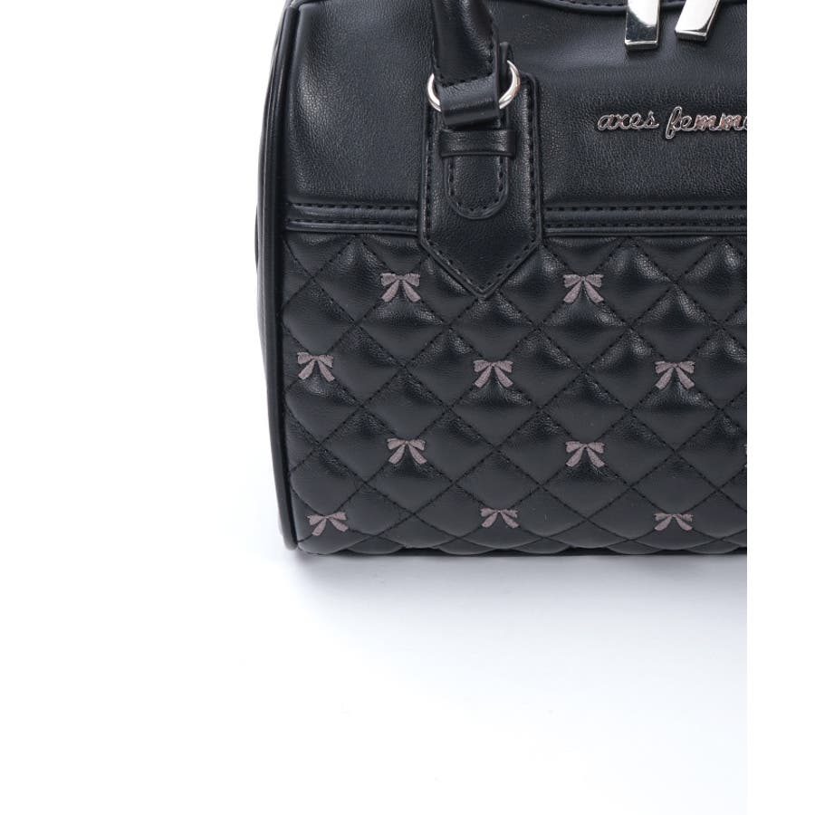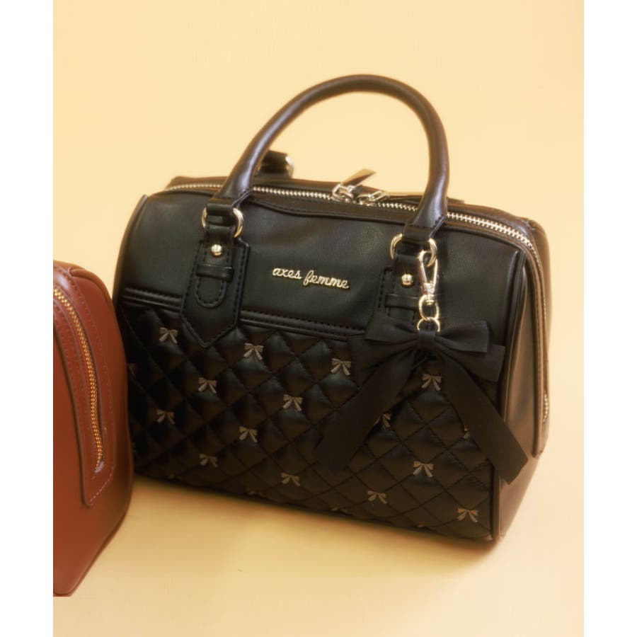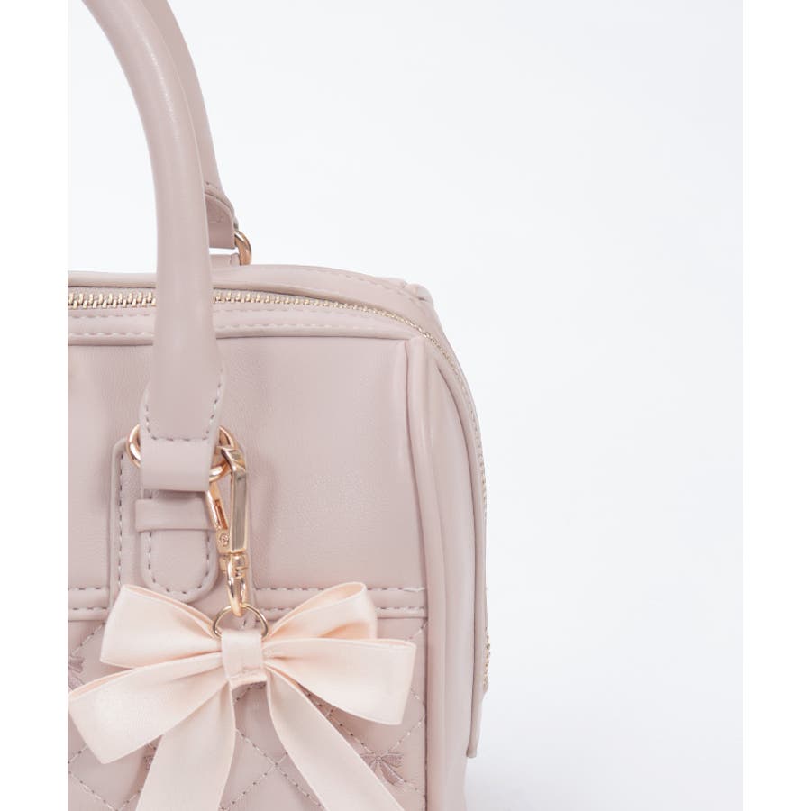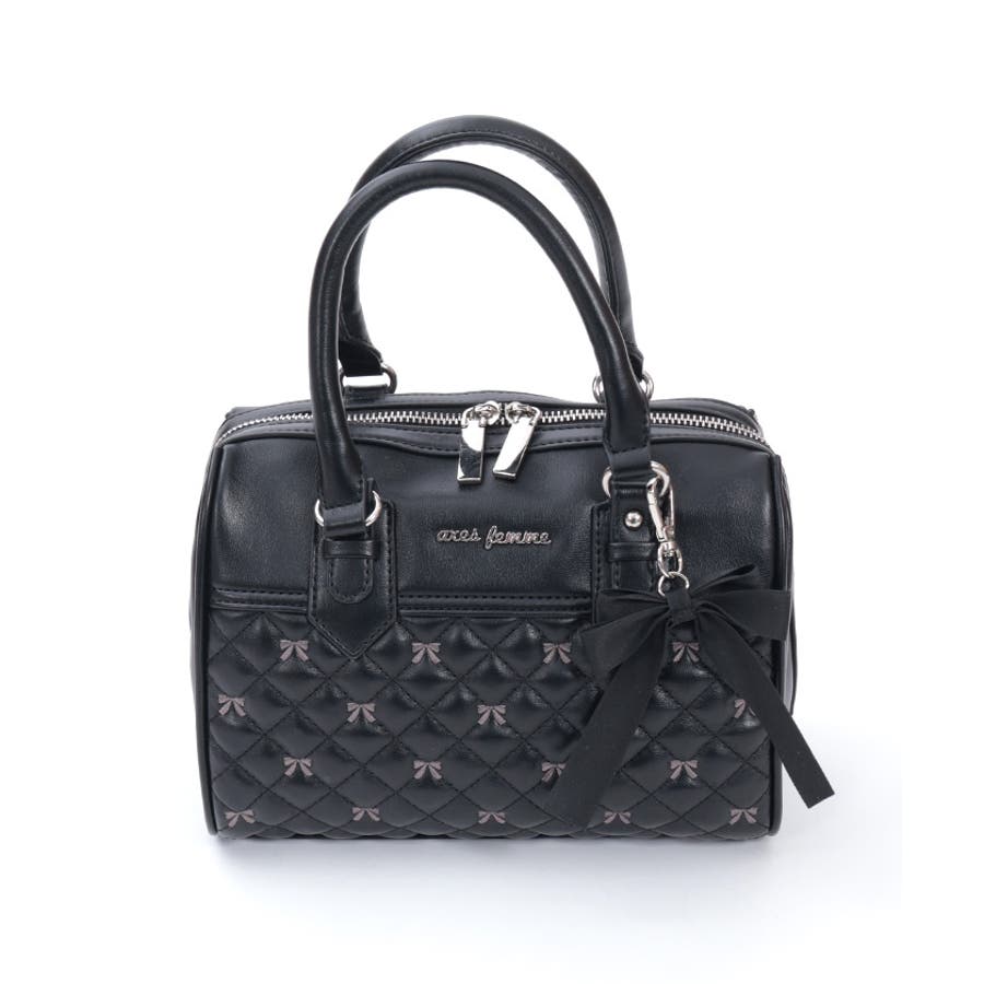リボンモチーフの刺繍が華やかなキルトデザインのボストンバッグです。