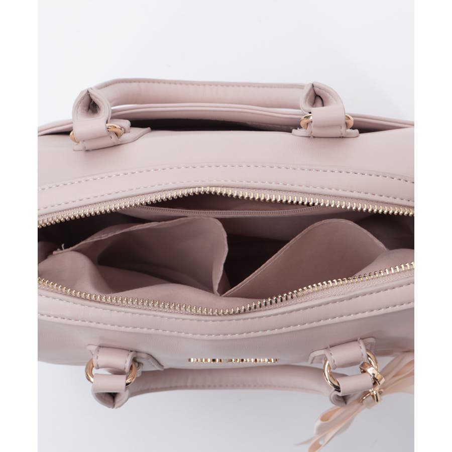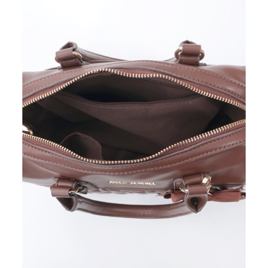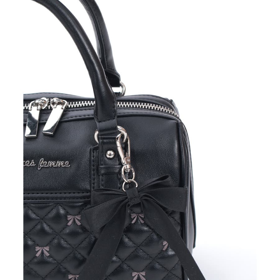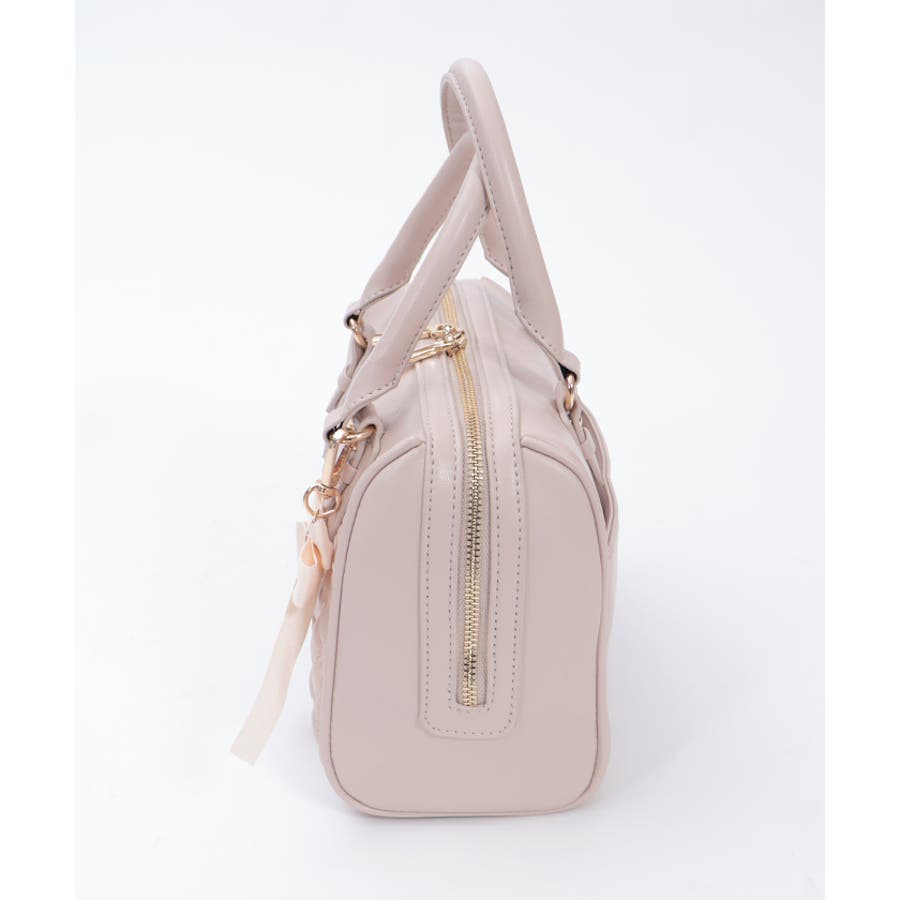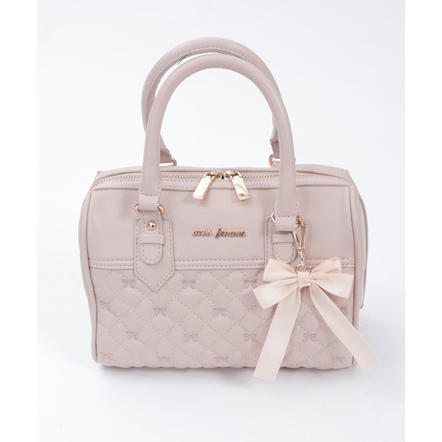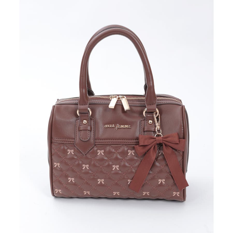 リボンモチーフの刺繍が華やかなキルトデザインのボストンバッグです。