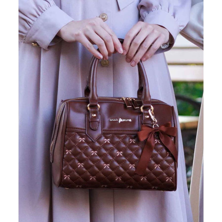 高級感のあるキルティングに、繊細なリボンの刺繍を柄のようにほどこした上品&フェミニンなデザイン。