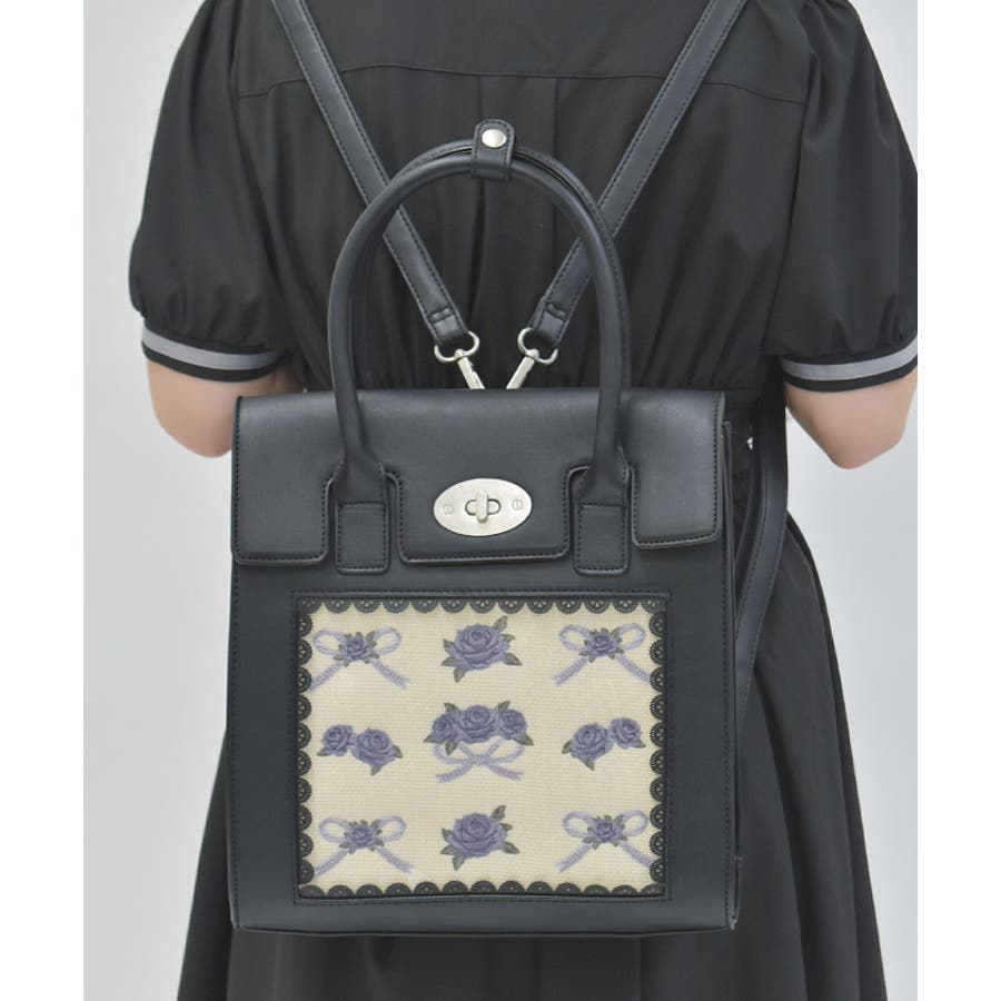 存在感抜群のローズ刺繍がフロントを上品に飾ります。