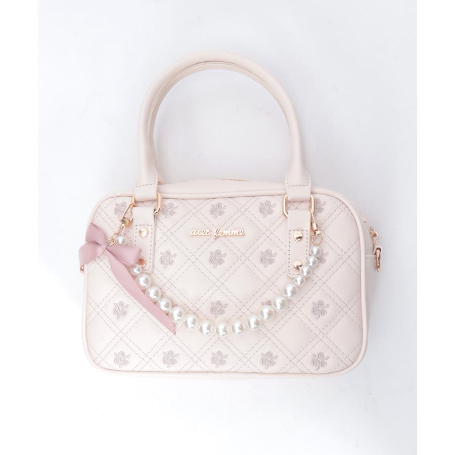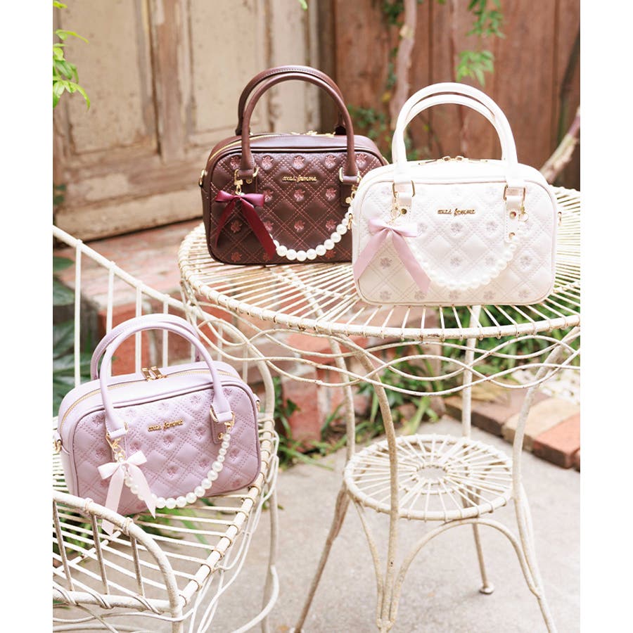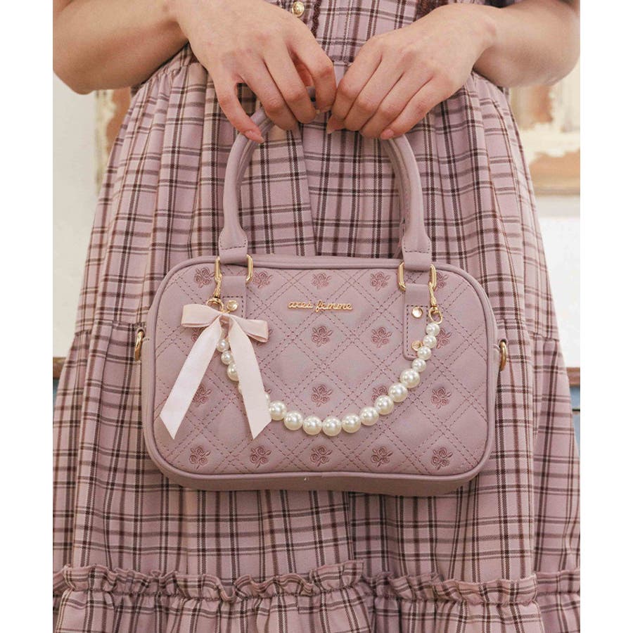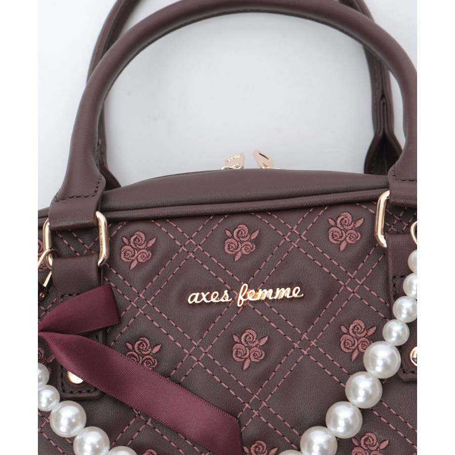 ローズ刺繍をほどこした、エレガントなキルトデザインバッグです。