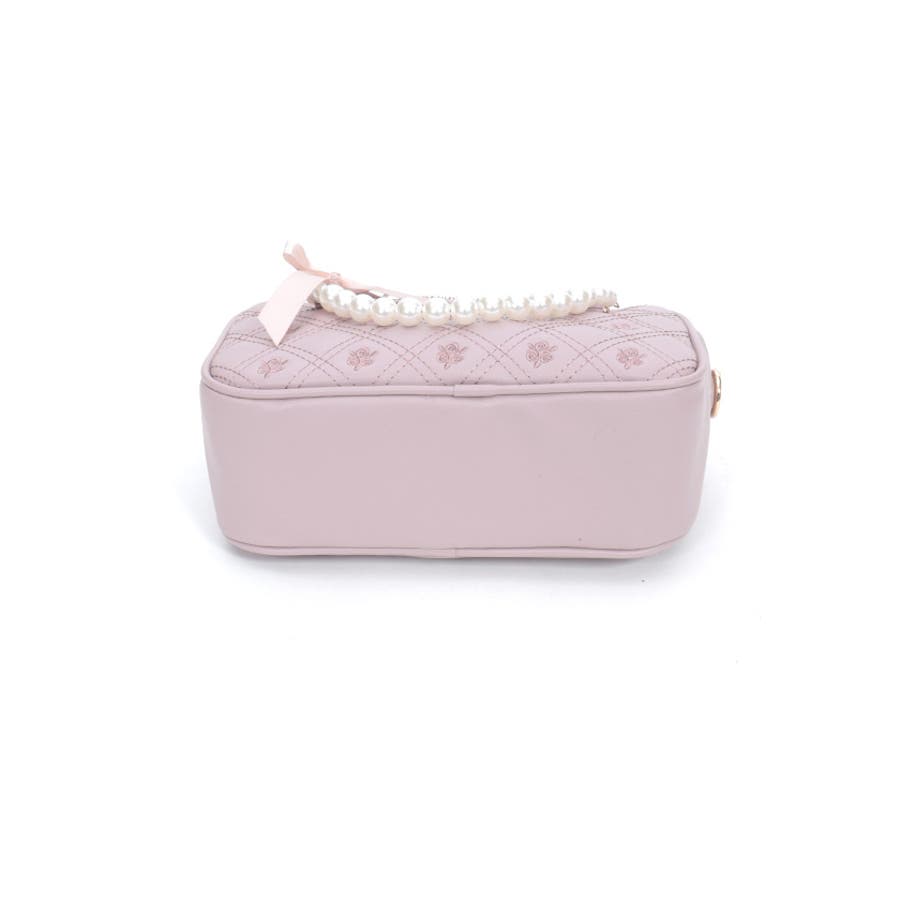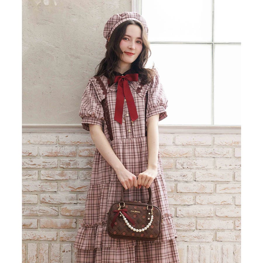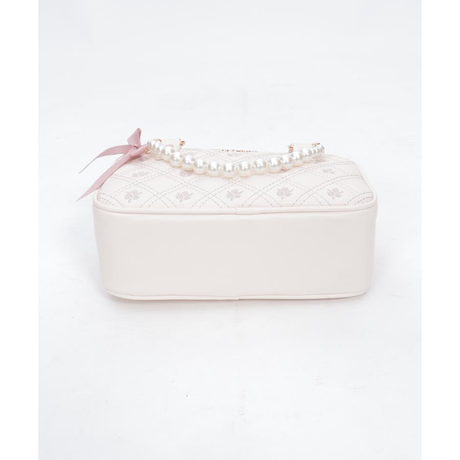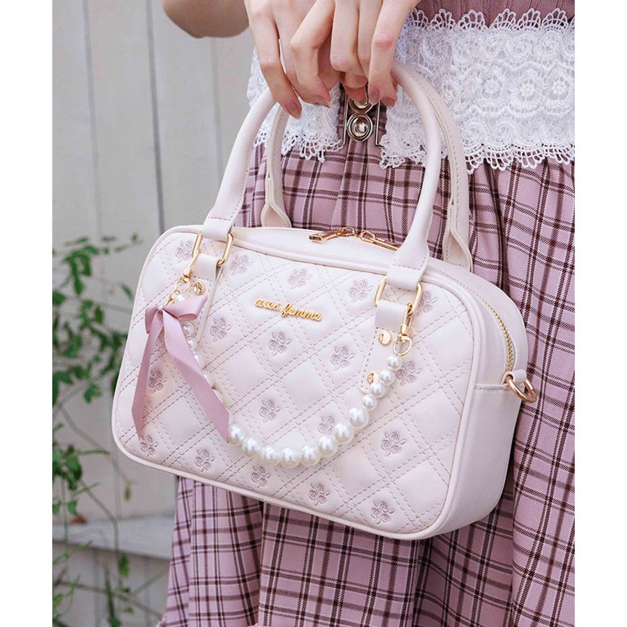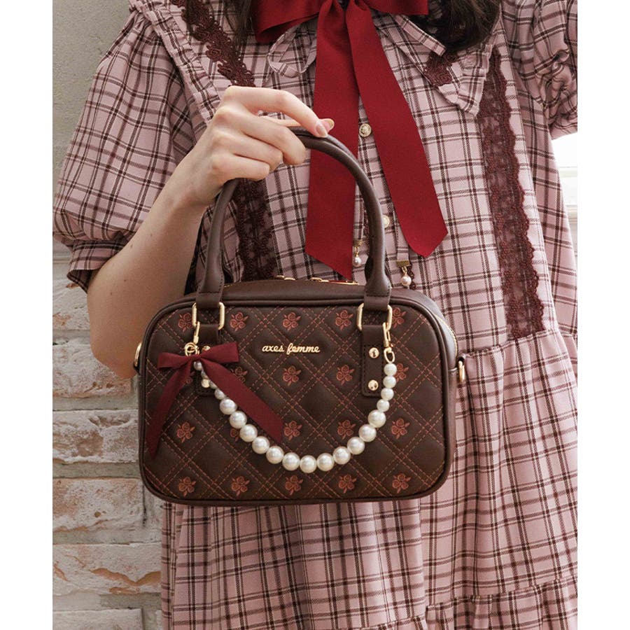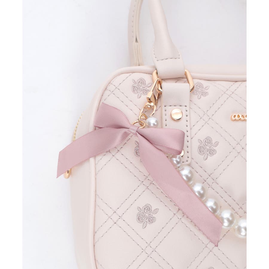 フロントを飾る上品なパールと配色リボンのチャームがポイントです。